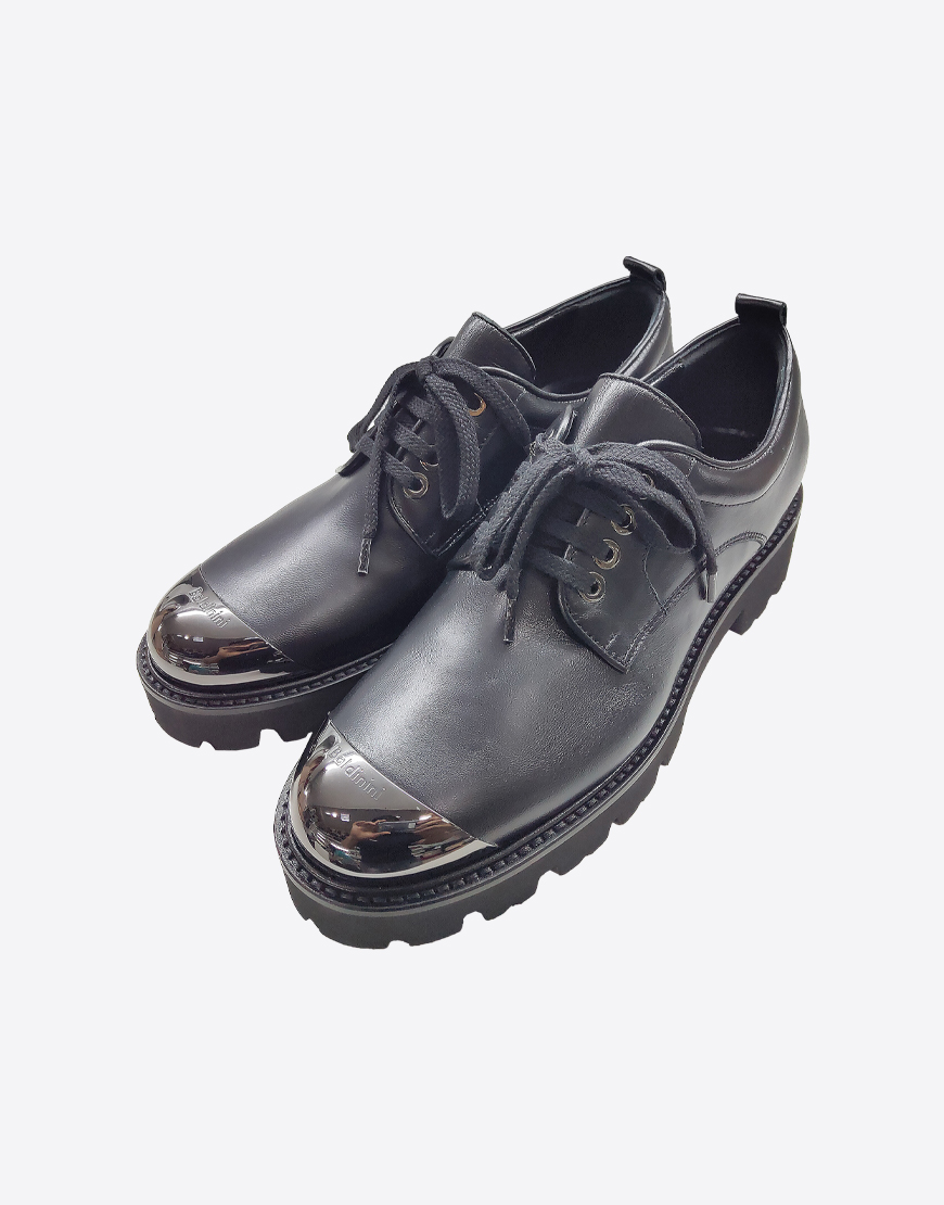 Baldinini оксфорды в чёрной коже, со стальной фурнитурой.