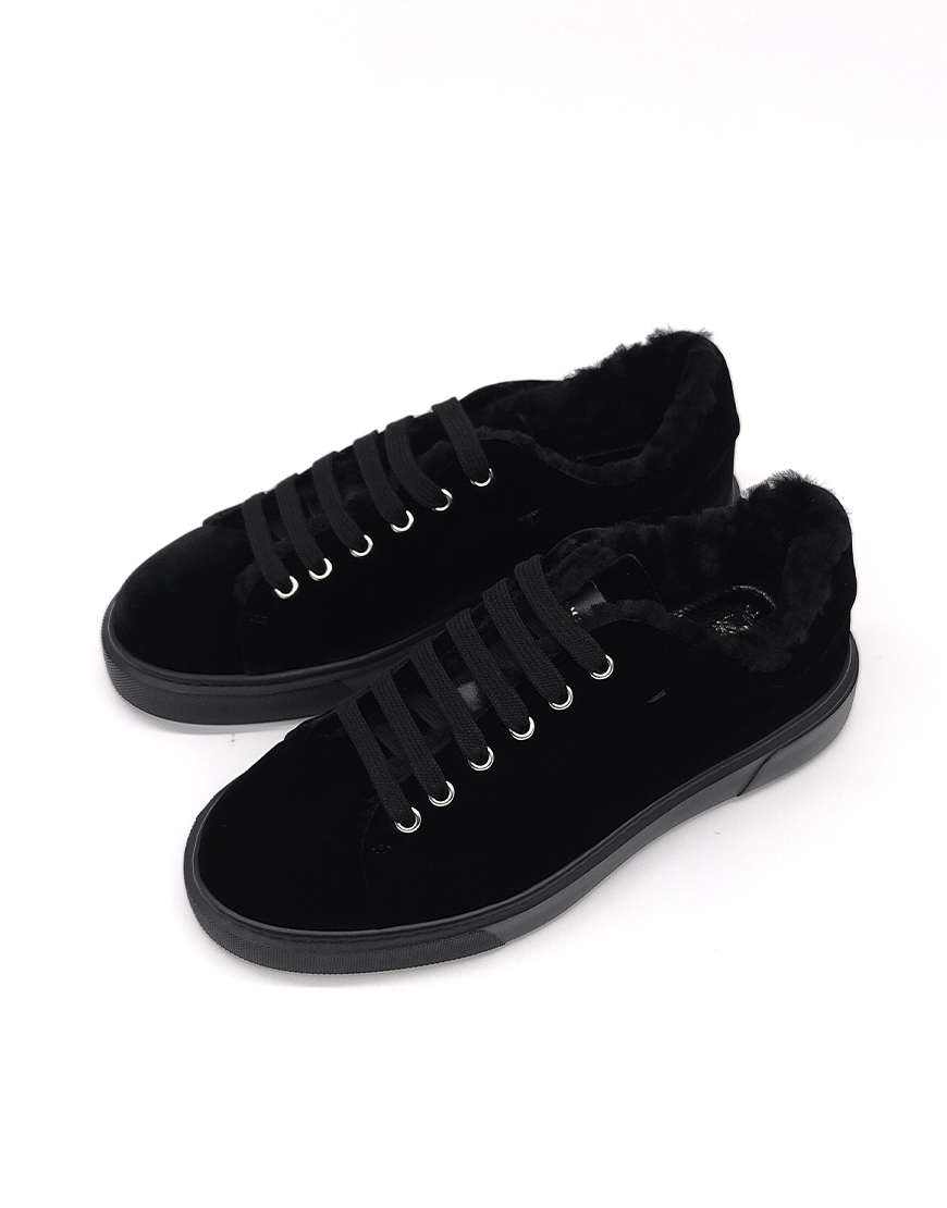 Camerlengo кеды в чёрном велюре, с мехом.