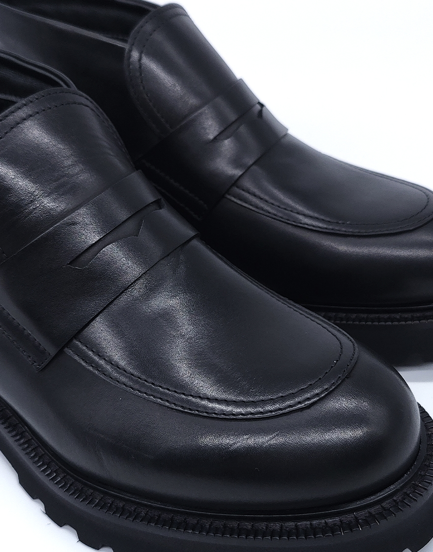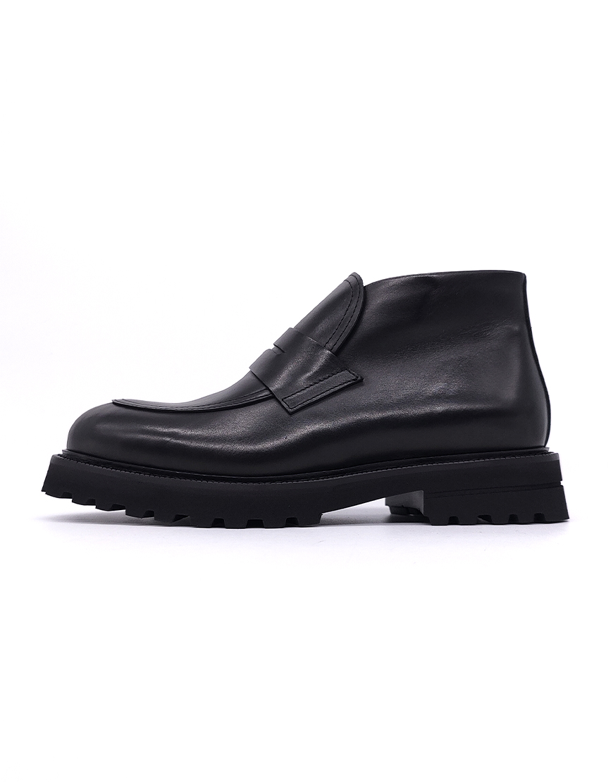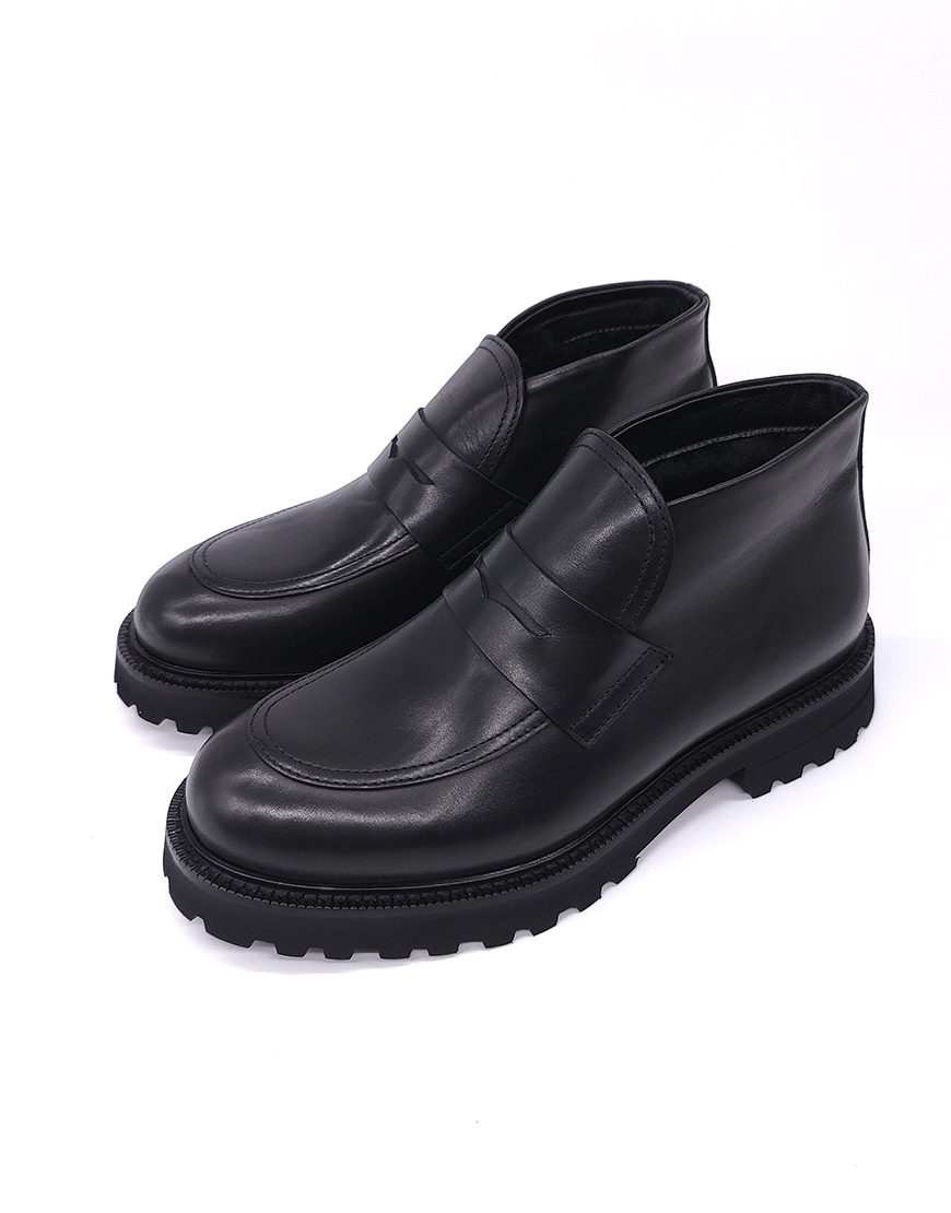 Camerlengo полуботинки на протекторе, в чёрной коже, с мехом.