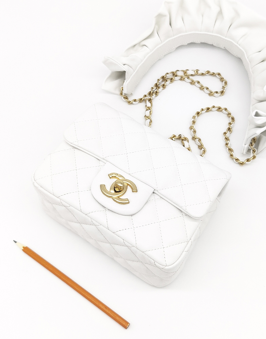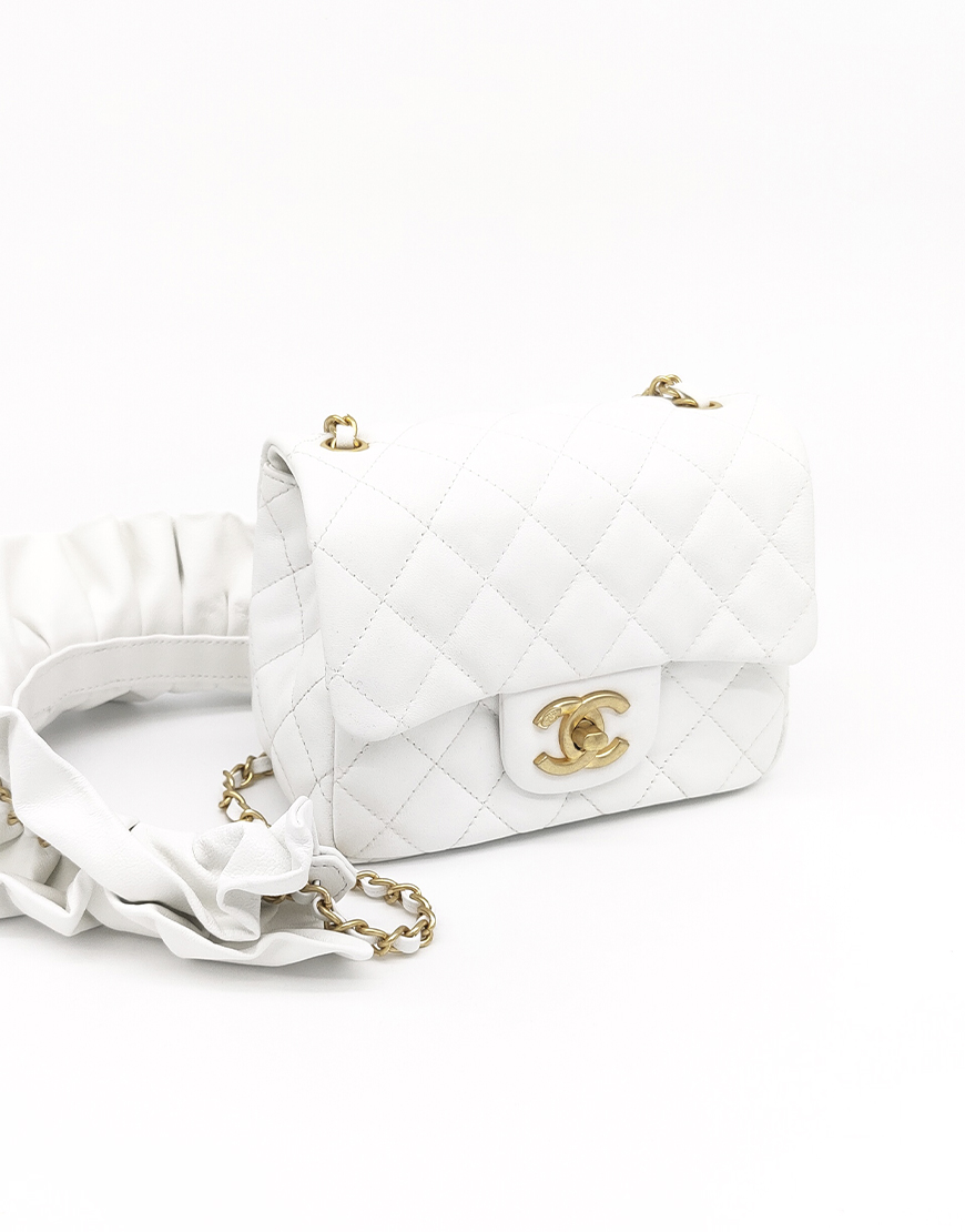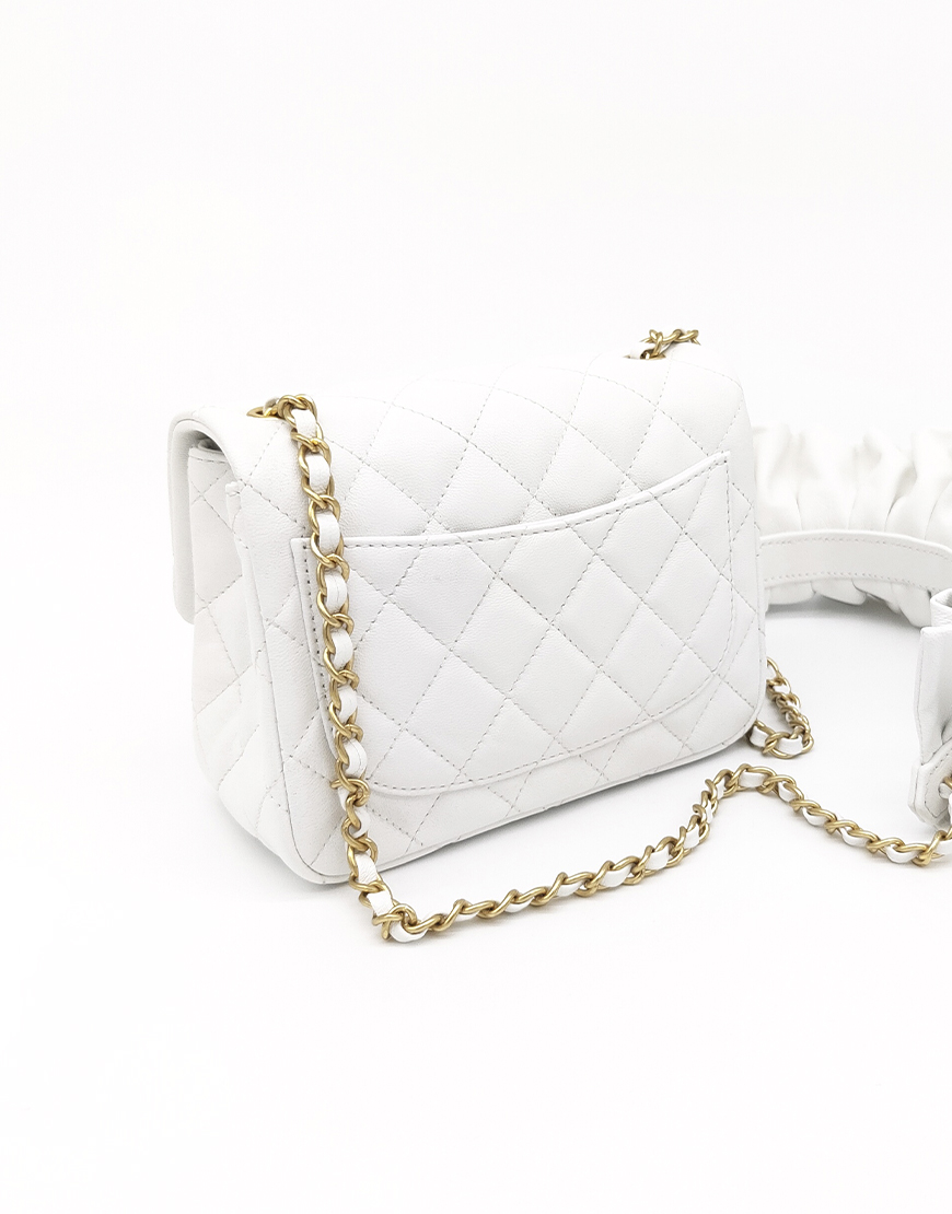 Chanel сумка в белой стёганной коже с драпированной ручкой.
