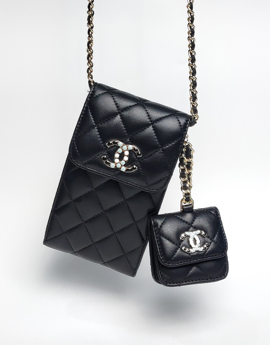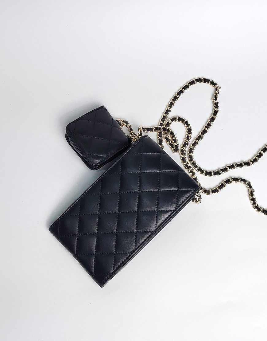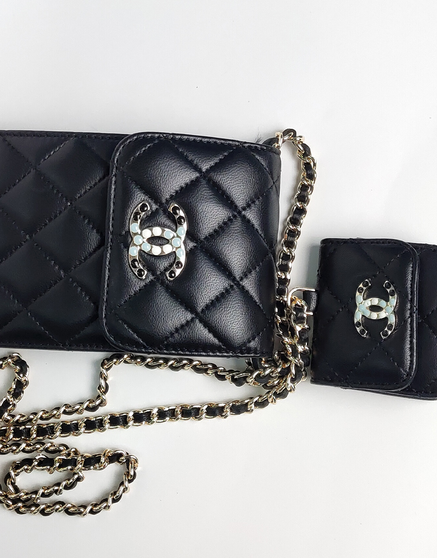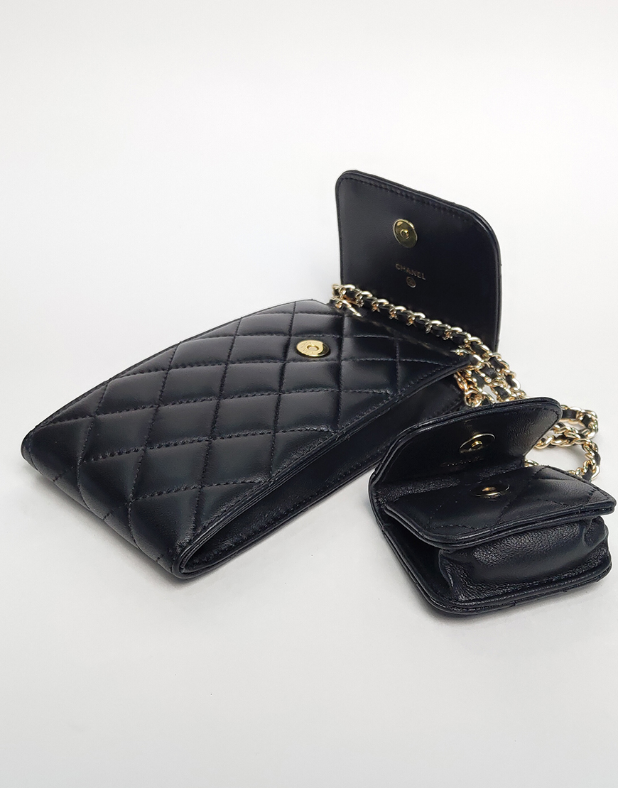 Chanel сумочка для телефона в чёрной коже, стёганная.