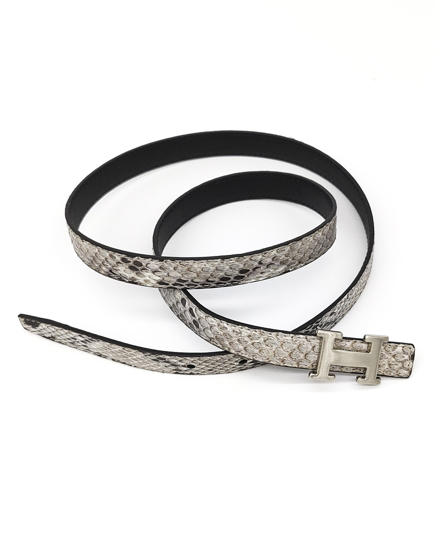 Herme’s тонкий ремень в сером питоне с стальной пряжкой.
