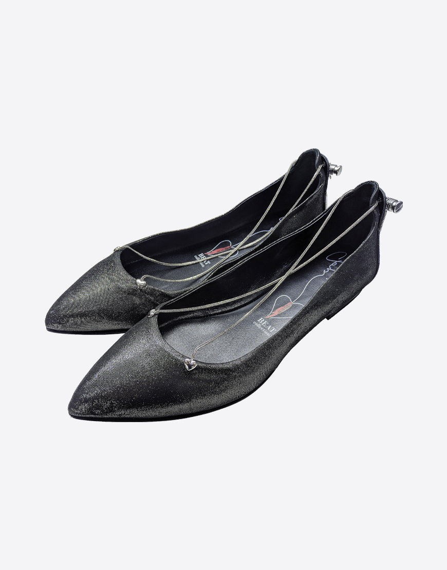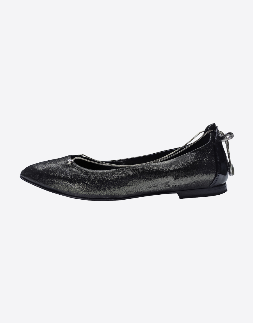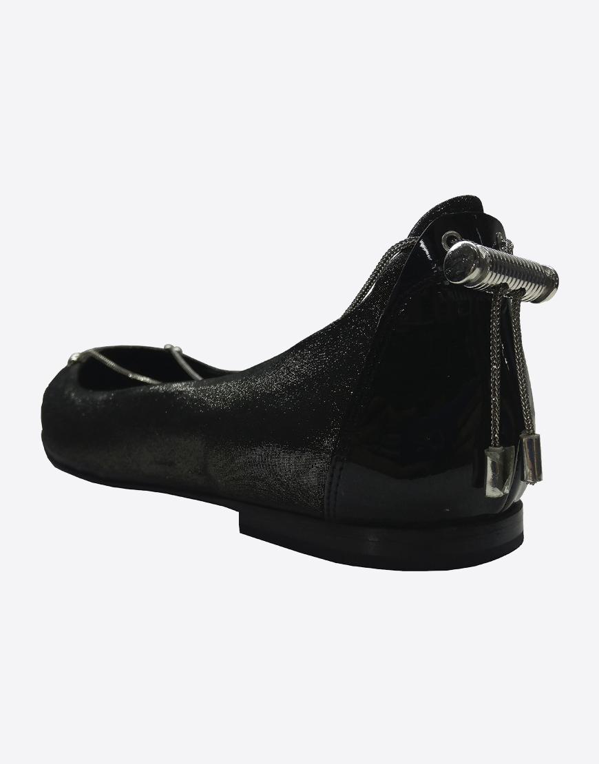 fd5636а балетки в чёрной лазерной коже, с цепочками.
