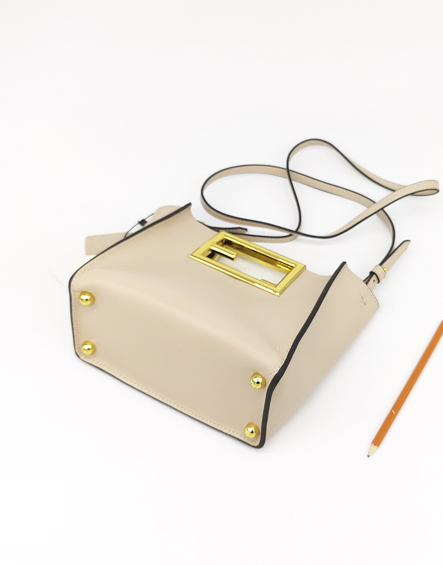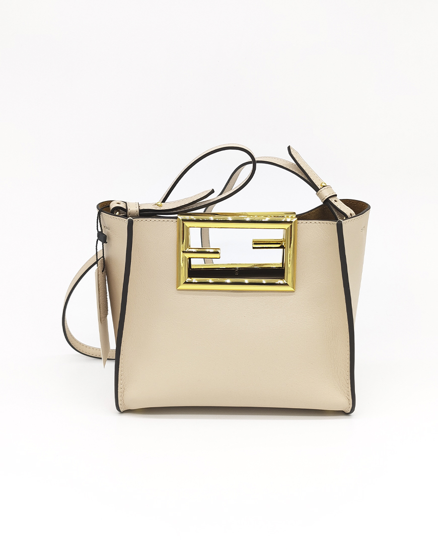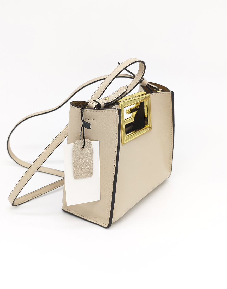 Fendi сумочка в бежевой коже, с золотым логотипом.