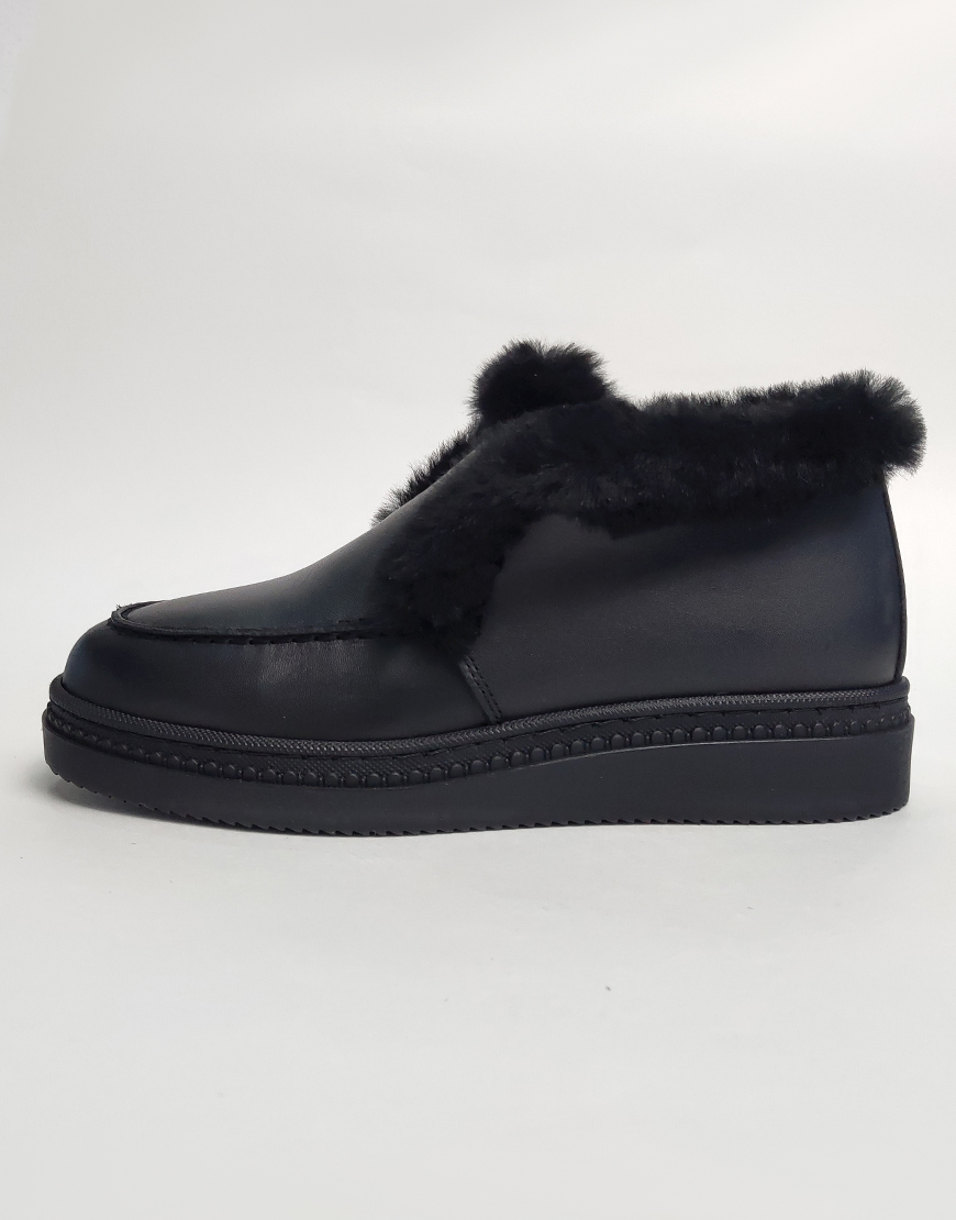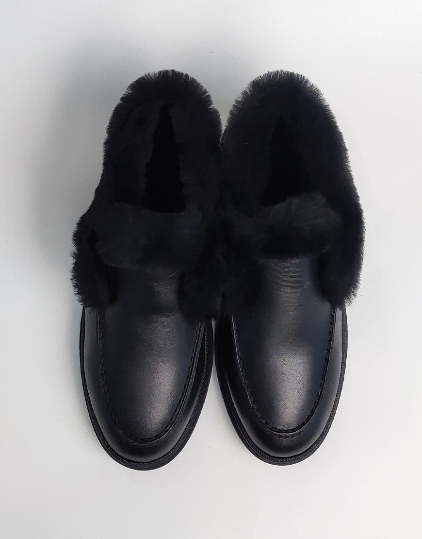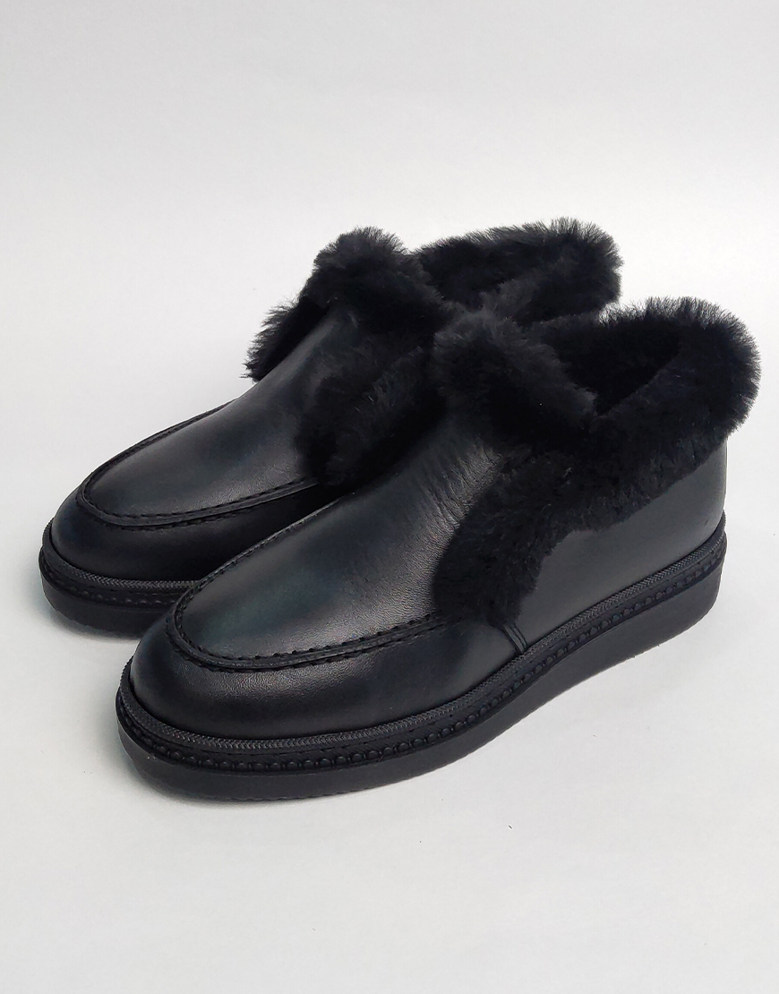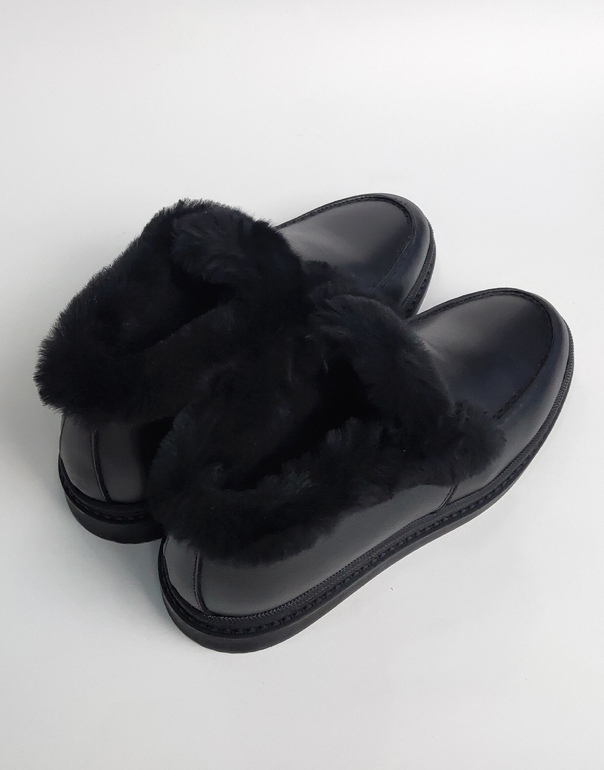 Flower ботинки в чёрной коже, с мехом.