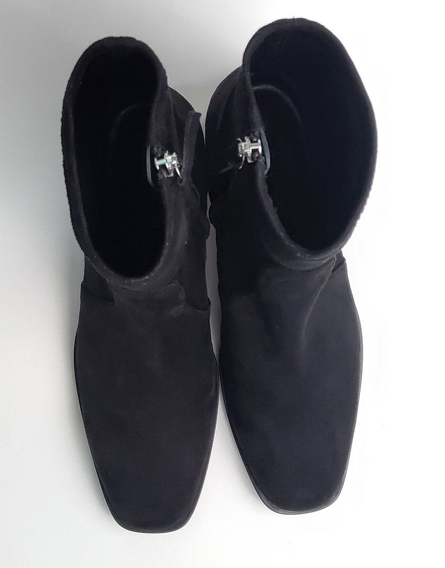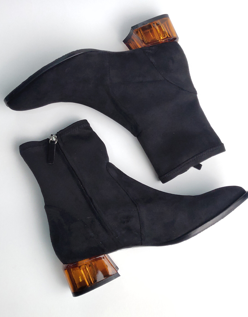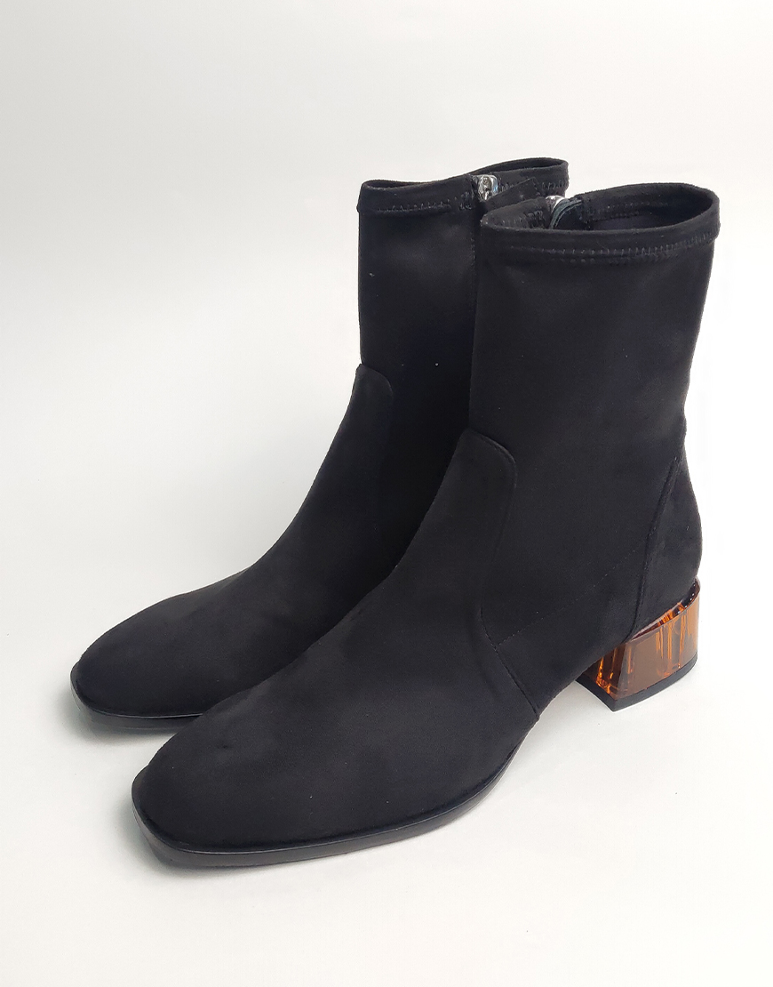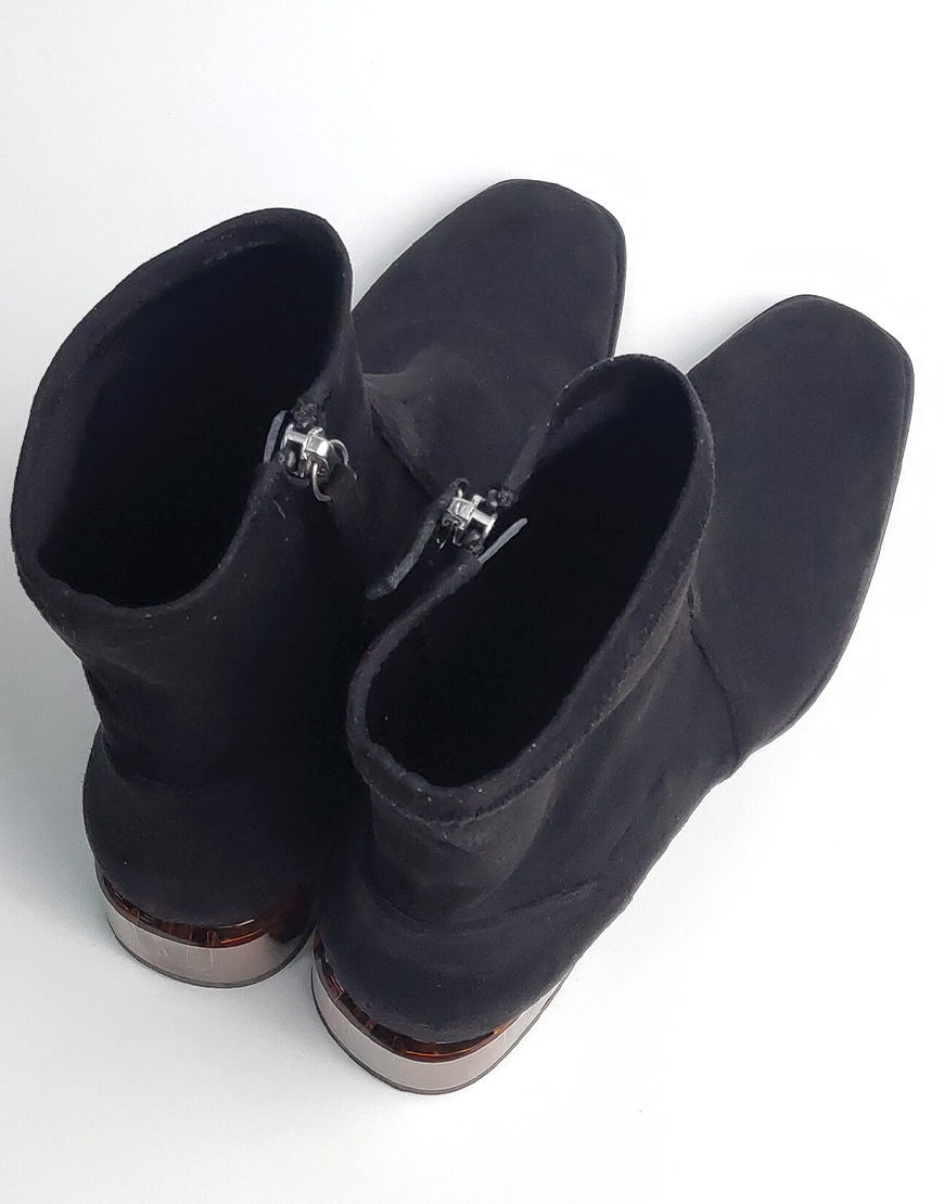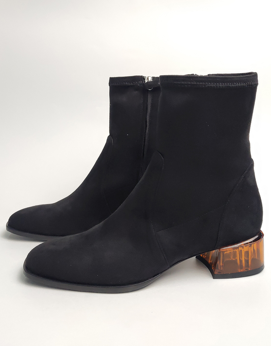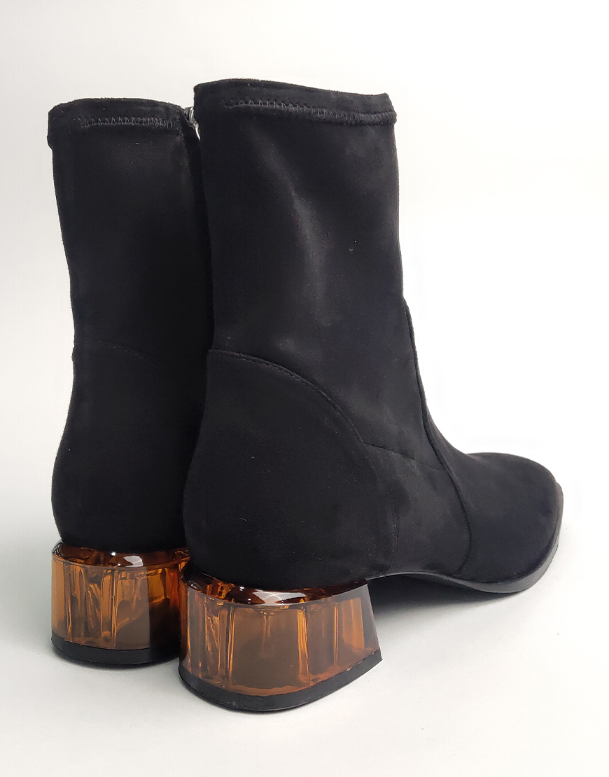 Flower ботинки в чёрной замше, на стекляном каблуке.