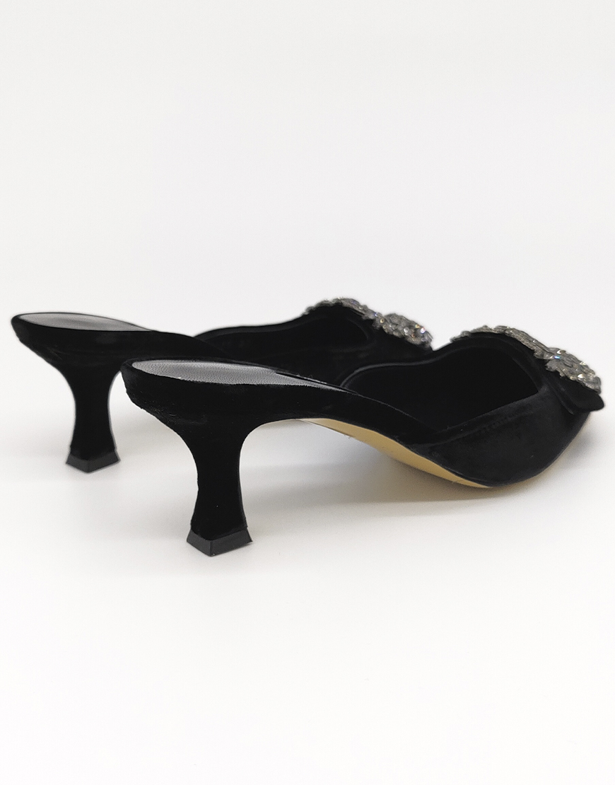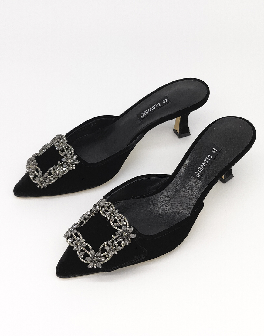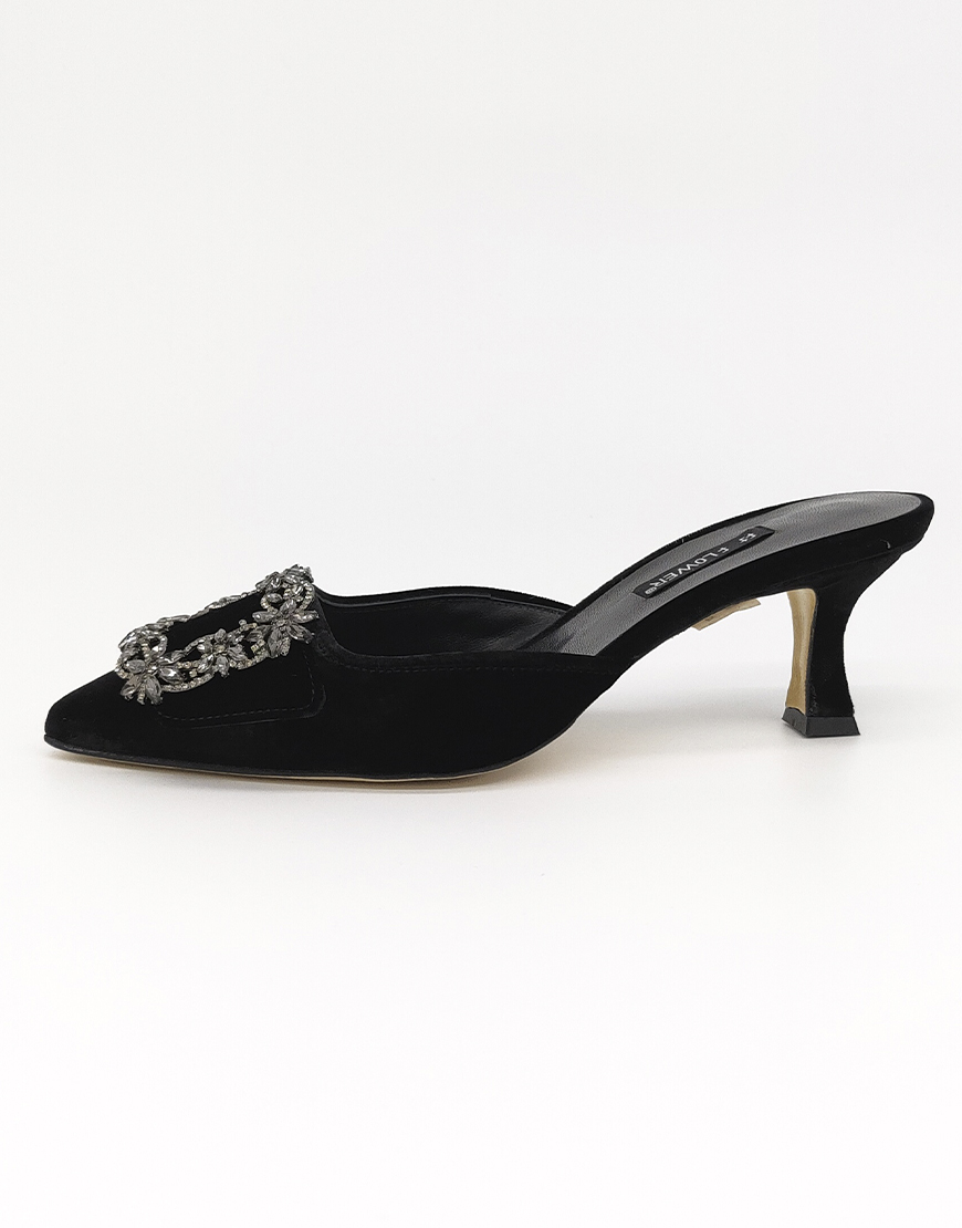 Flower мюли на рюмке в чёрном велюре, с брошью.