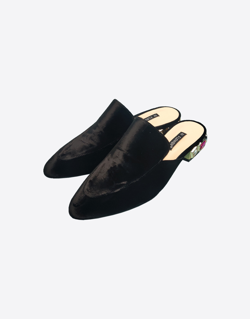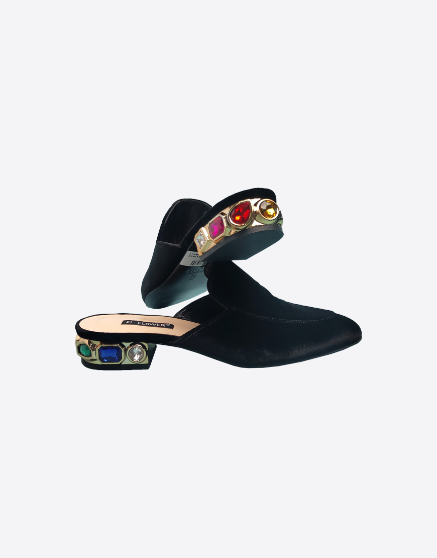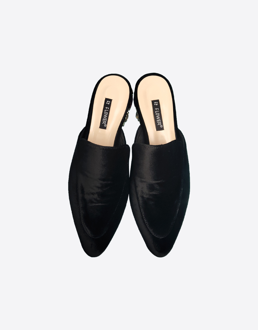 Flower мюли в чёрном велюре.