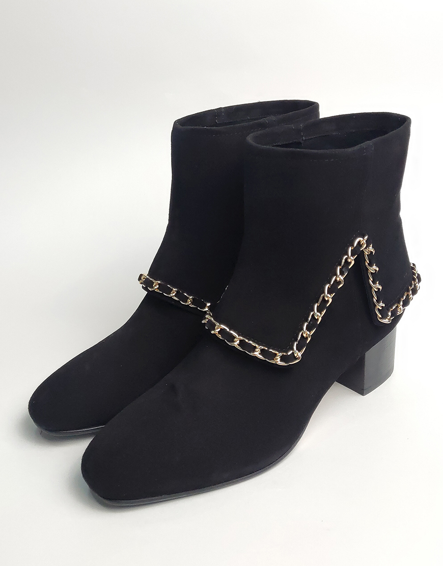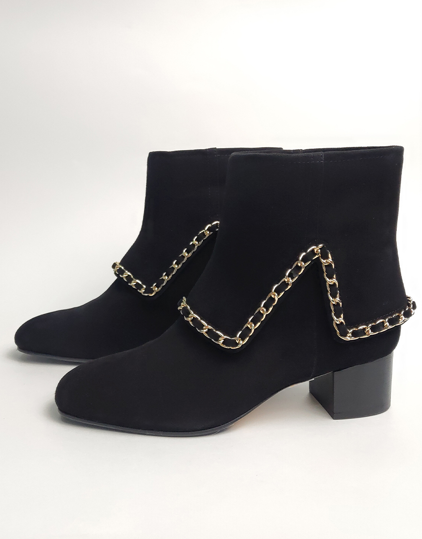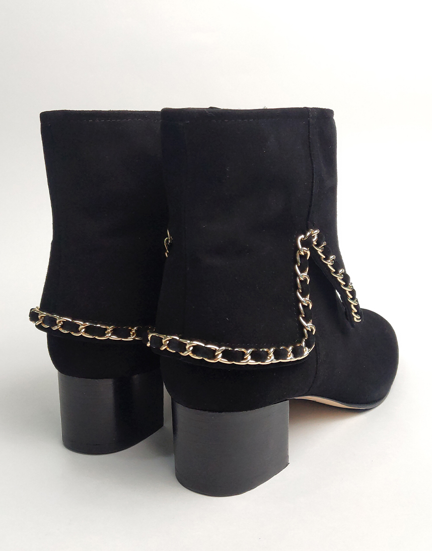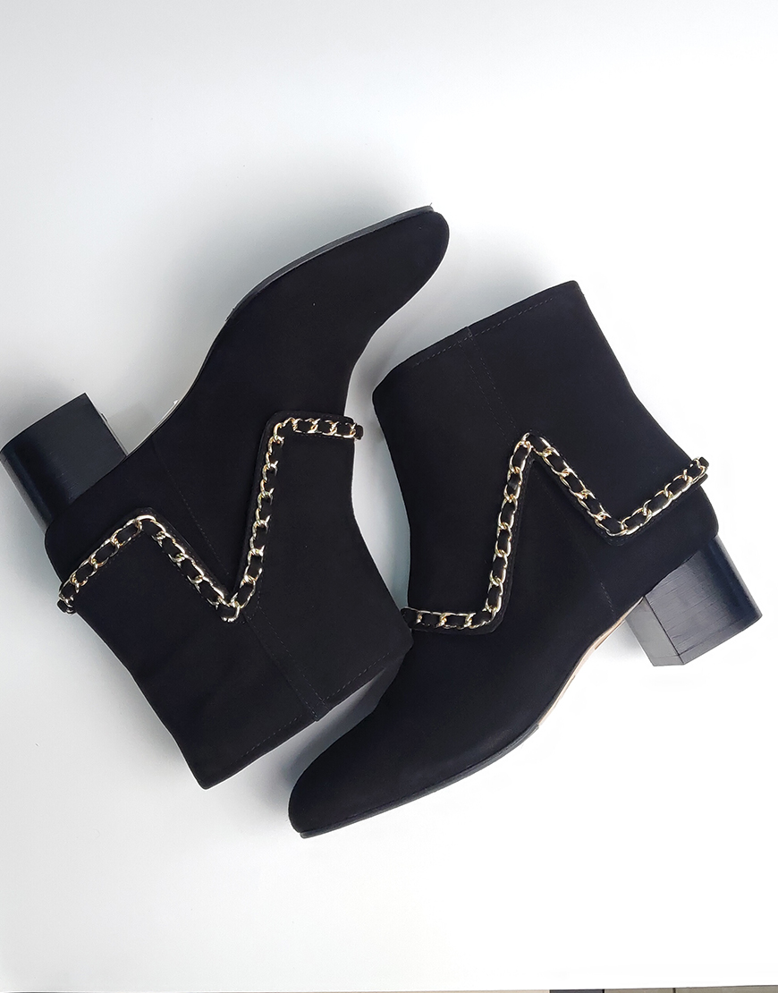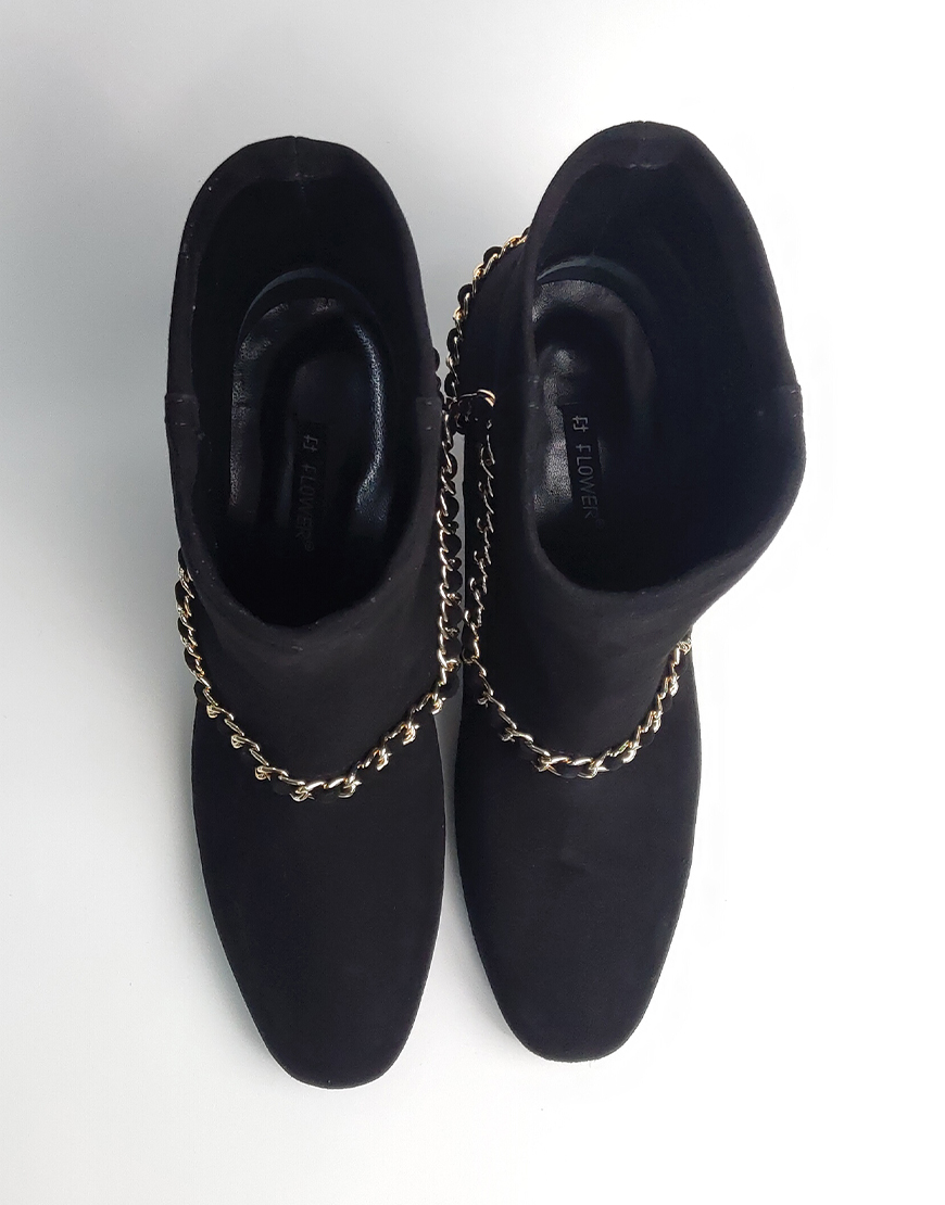 Flower полусапожки в чёрной замше, с золотой цепью.