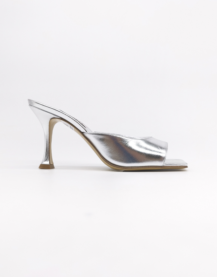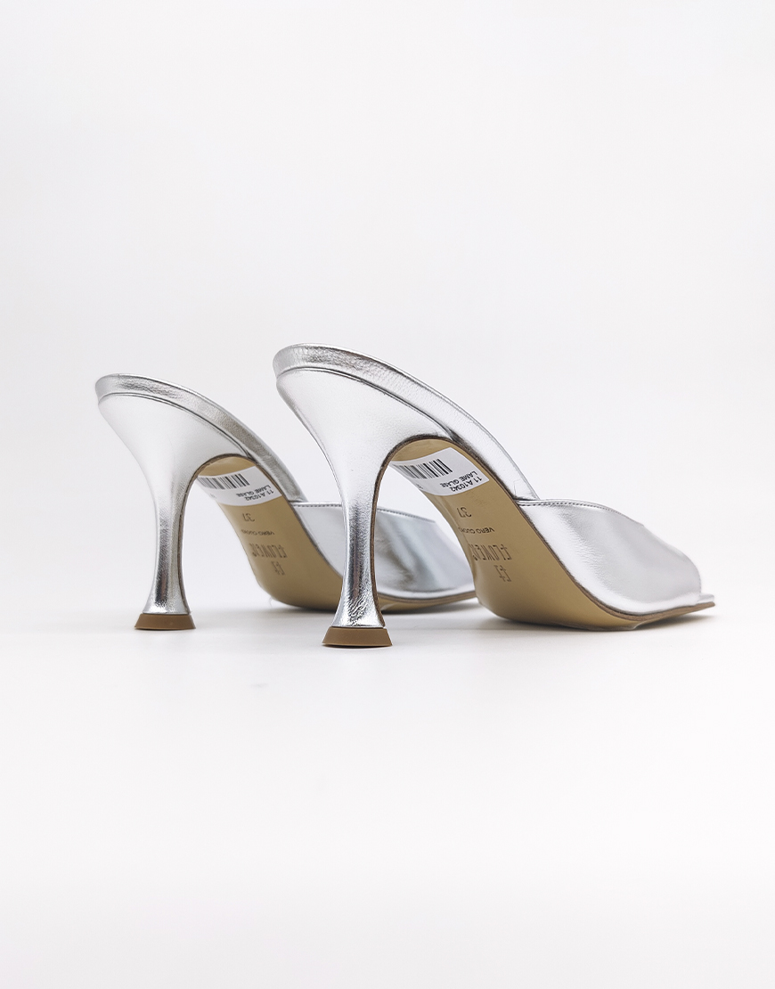 Flower шлёпанцы на шпильке, в серебристой коже.