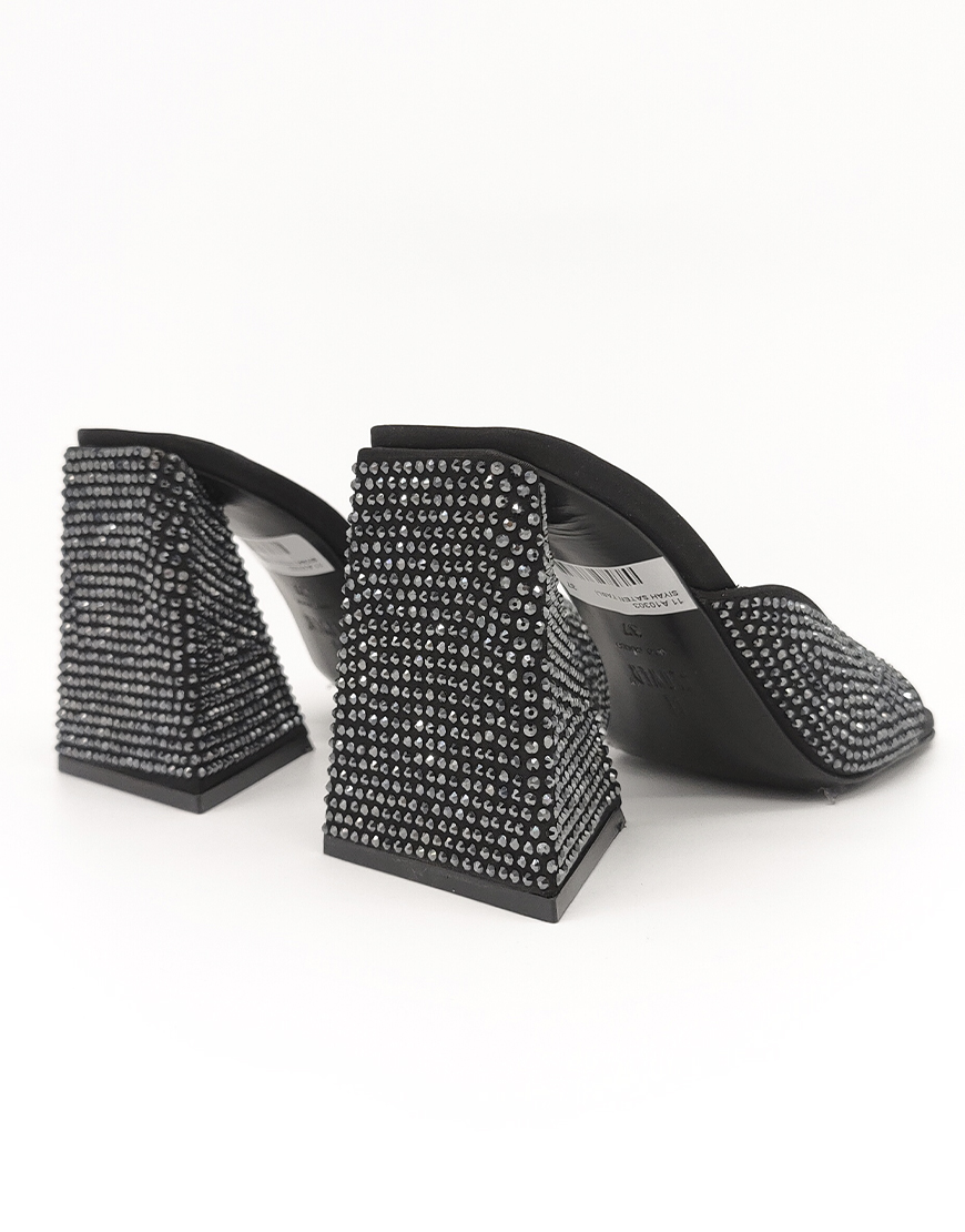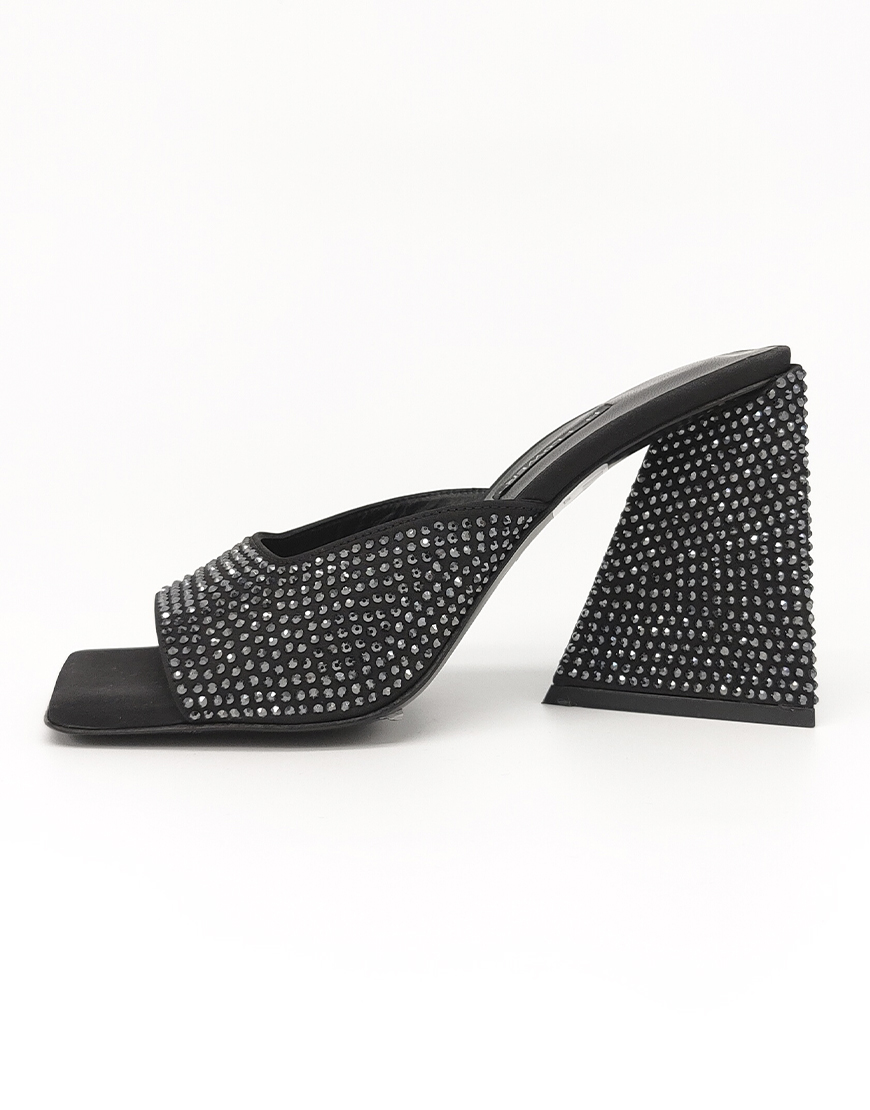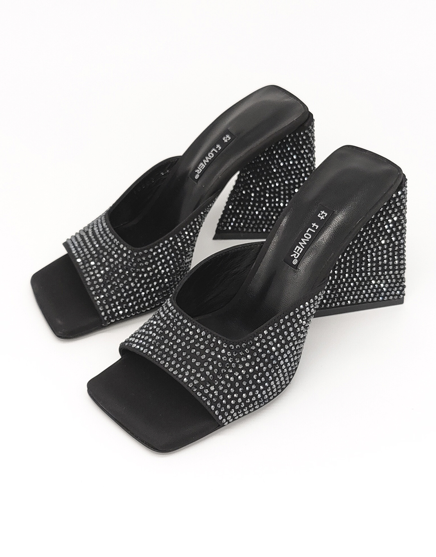 Flower шлёпки в камнях, на устойчивом каблуке.