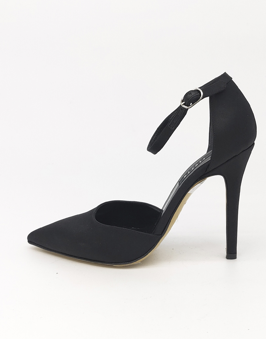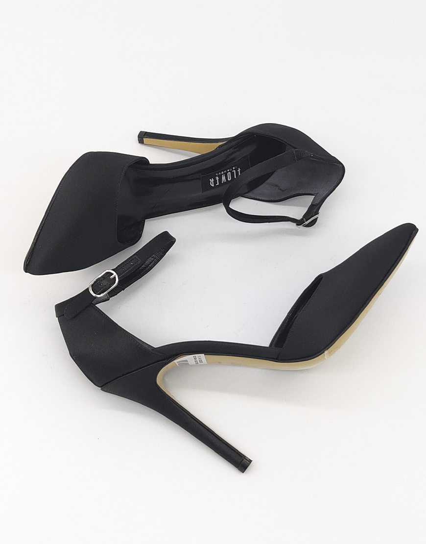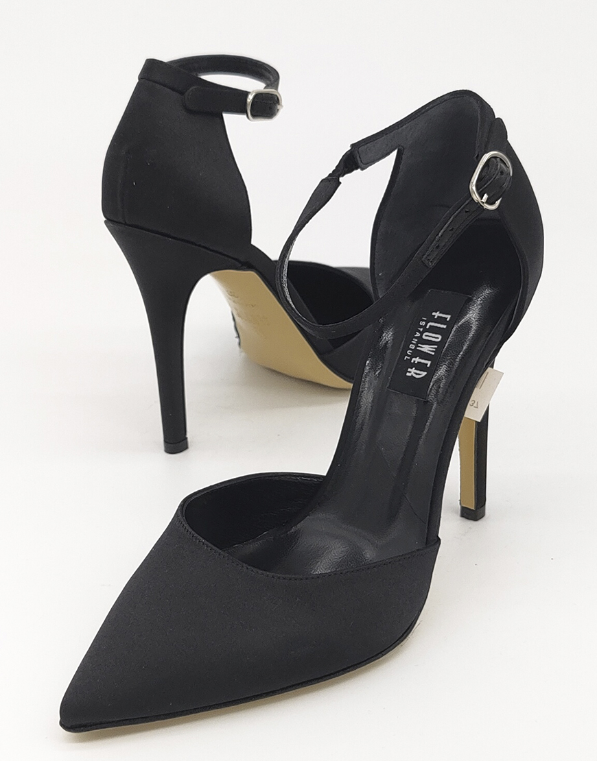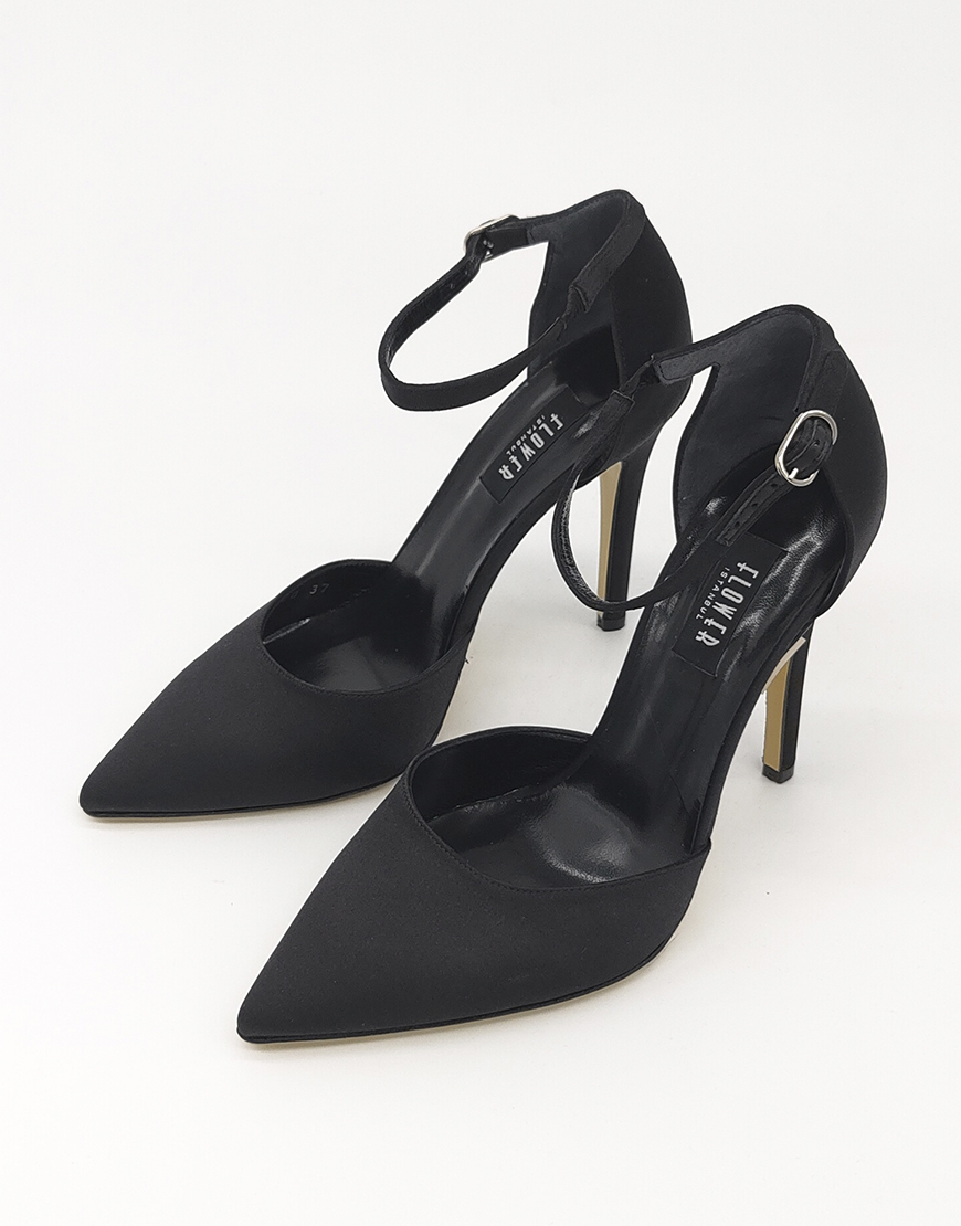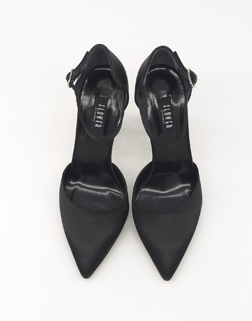 Flower туфли с октрытым боком, в чёрном сатине.
