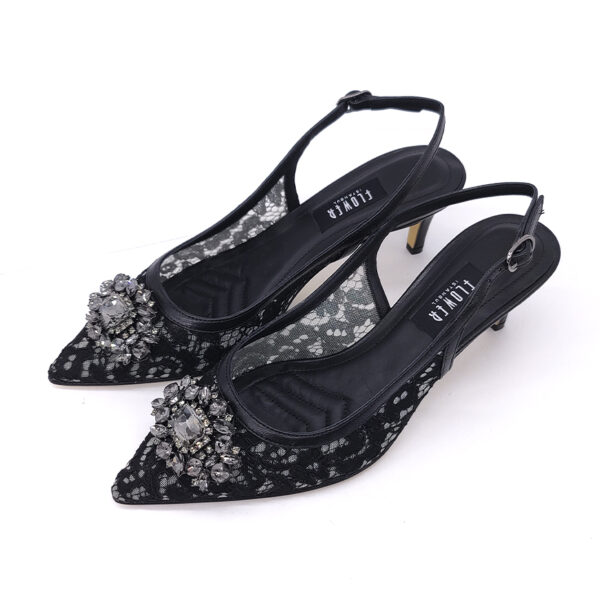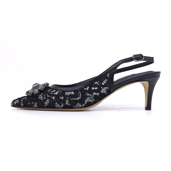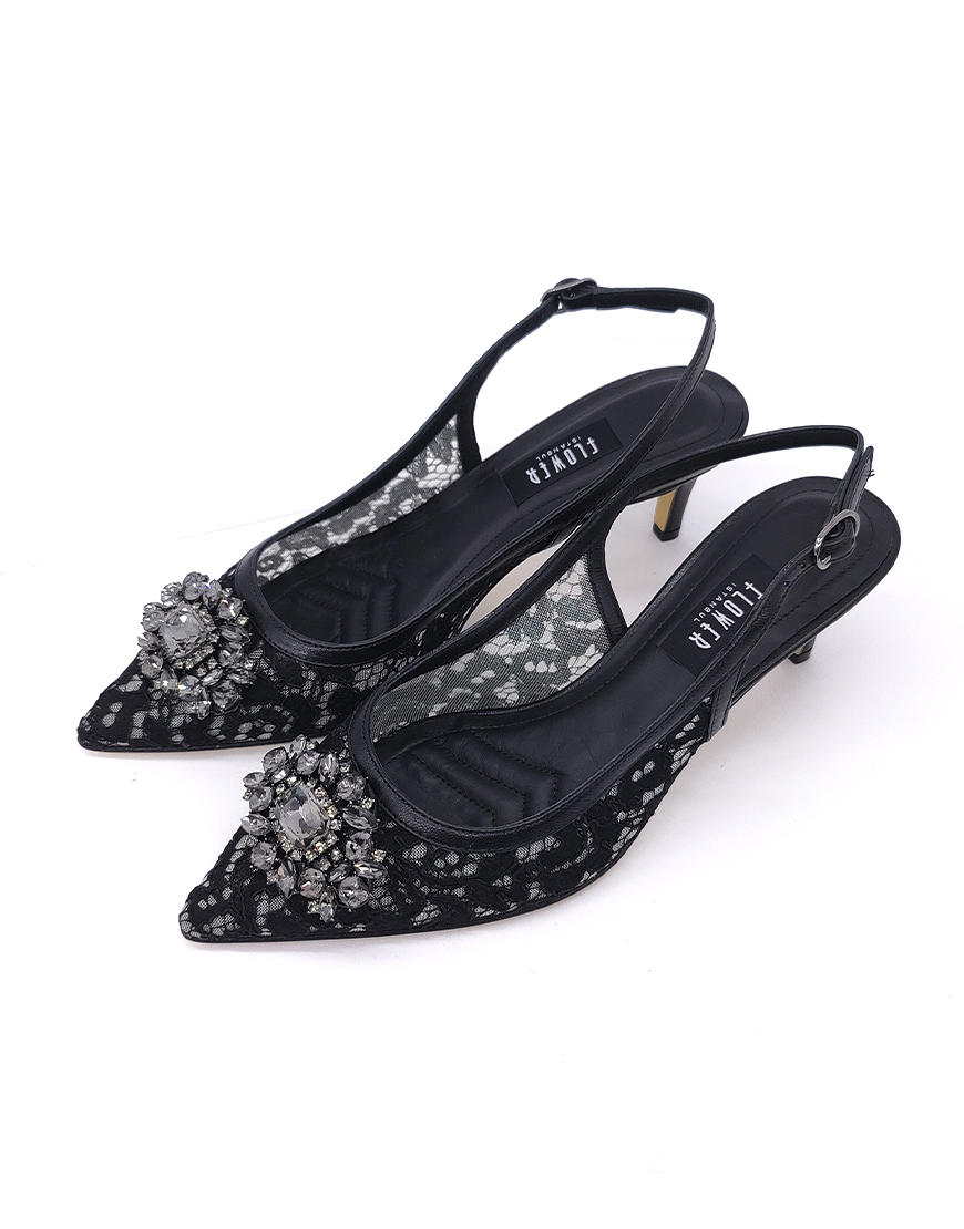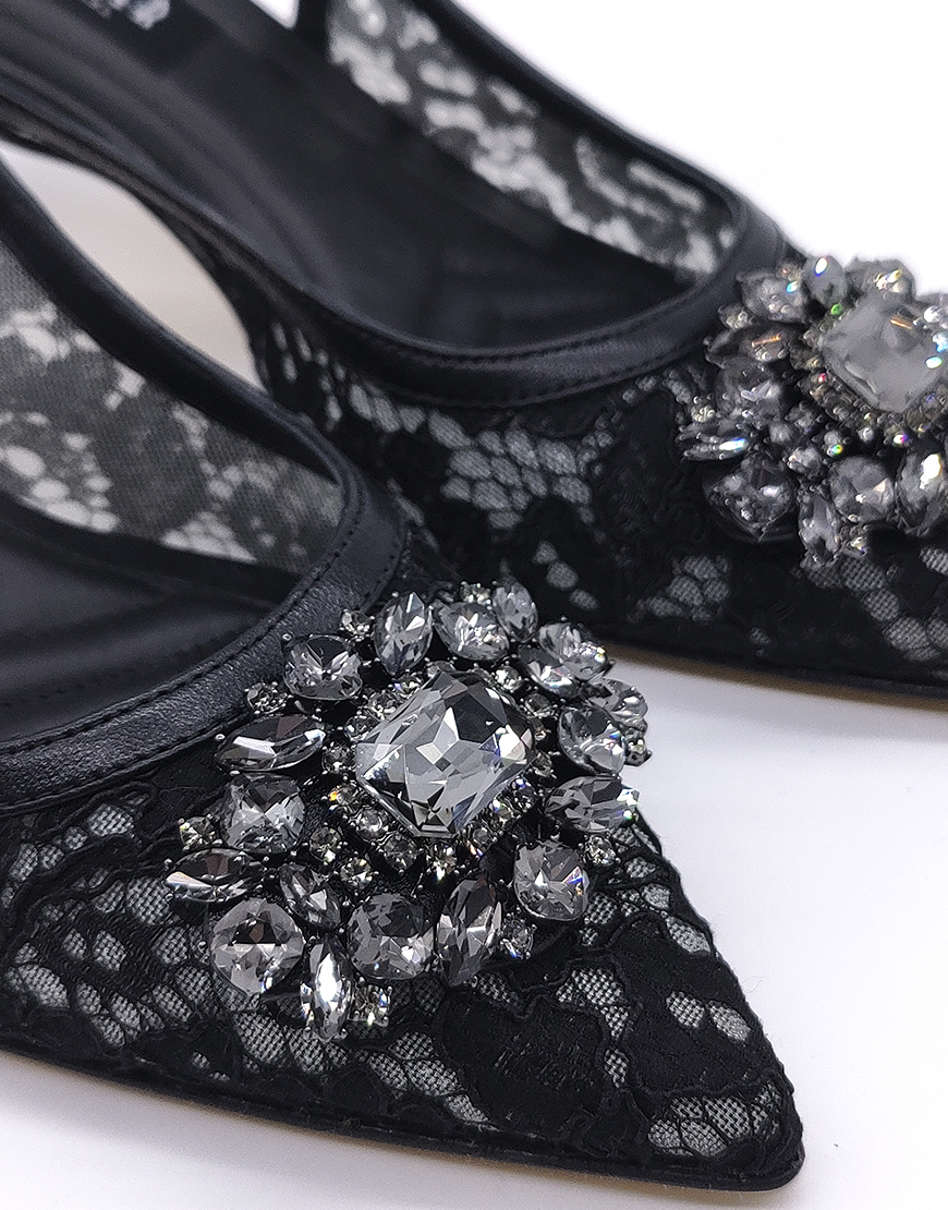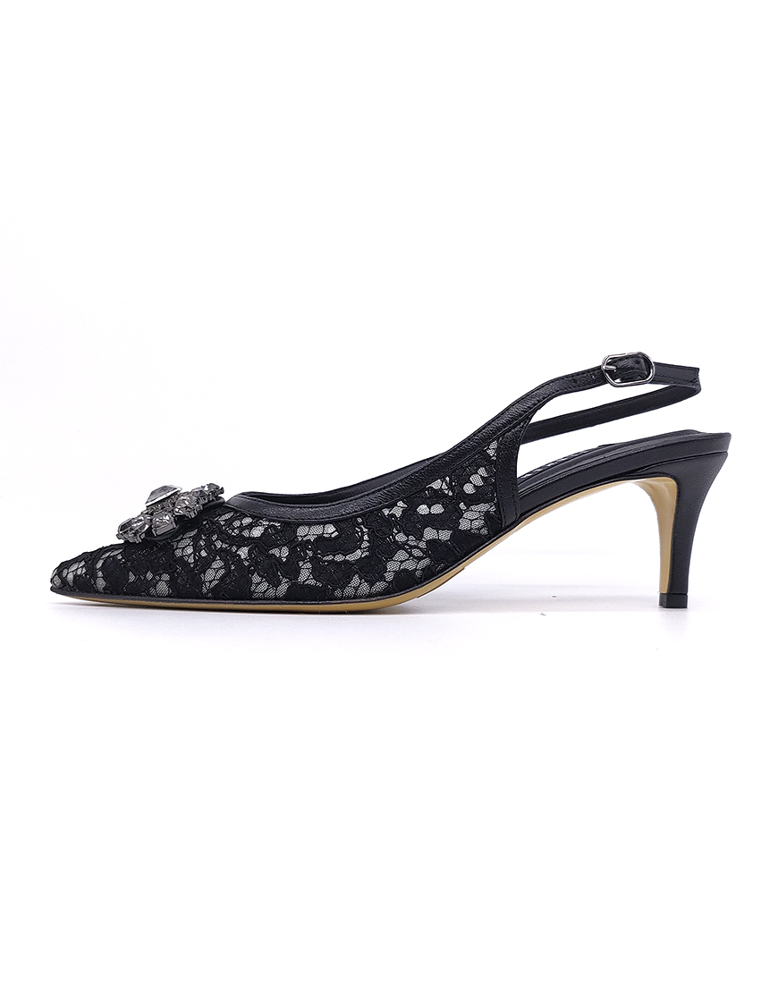 FLW слингбэки на рюмке, в чёрном гипюре, с брошью.