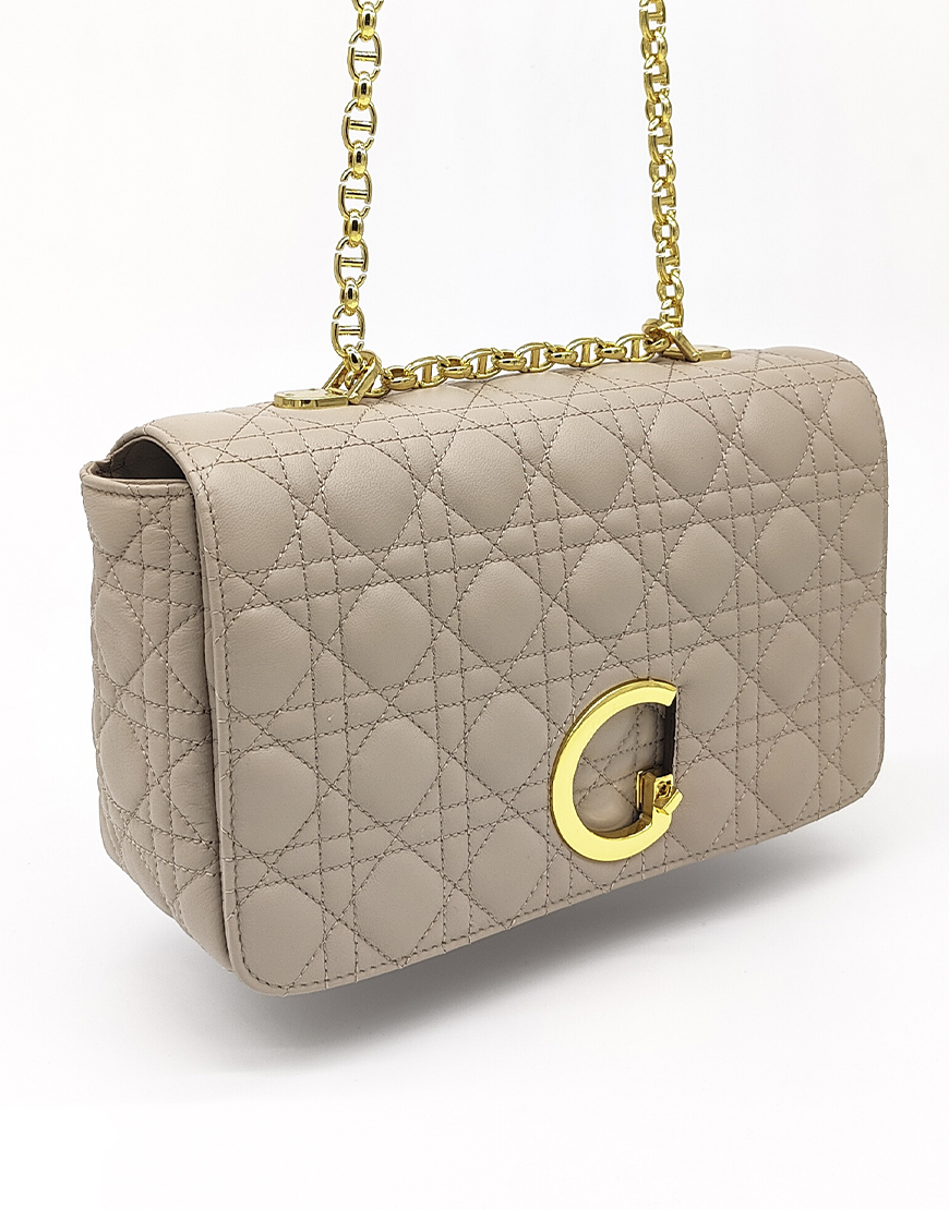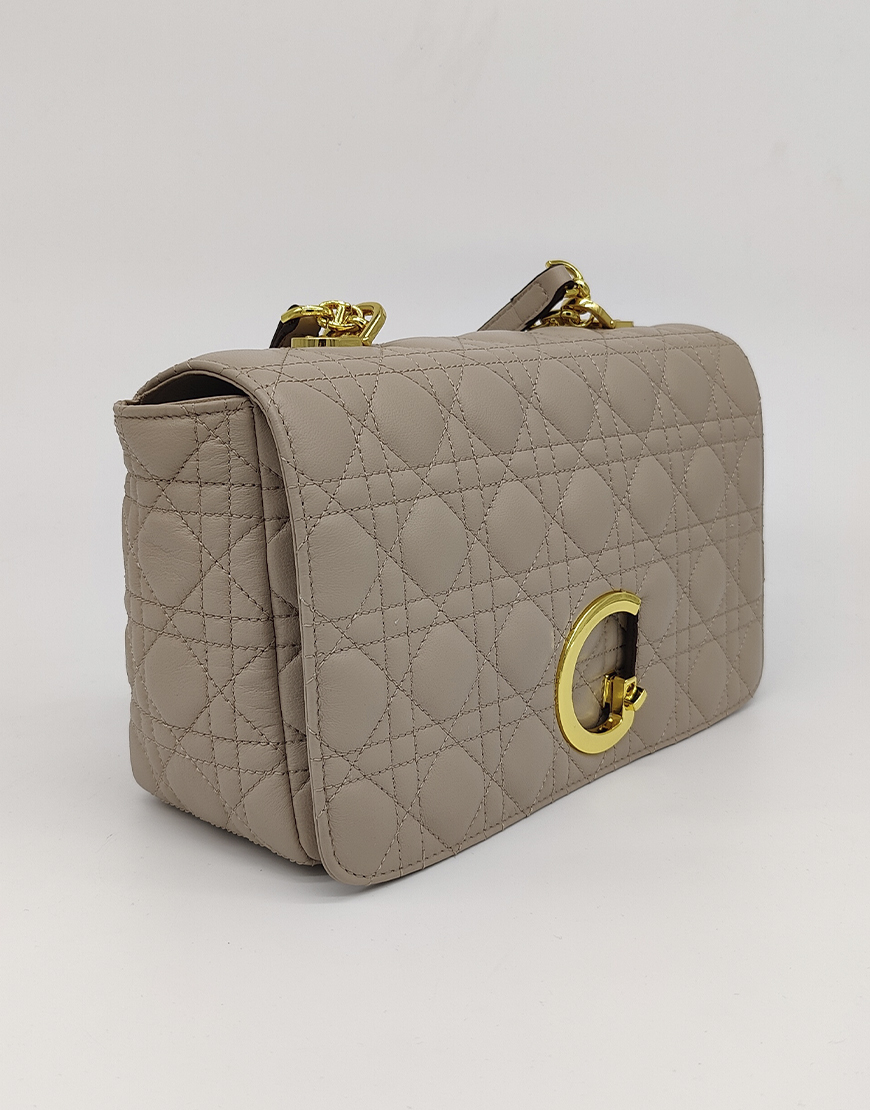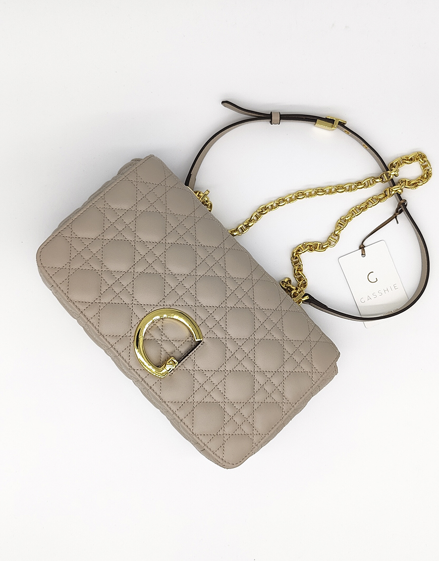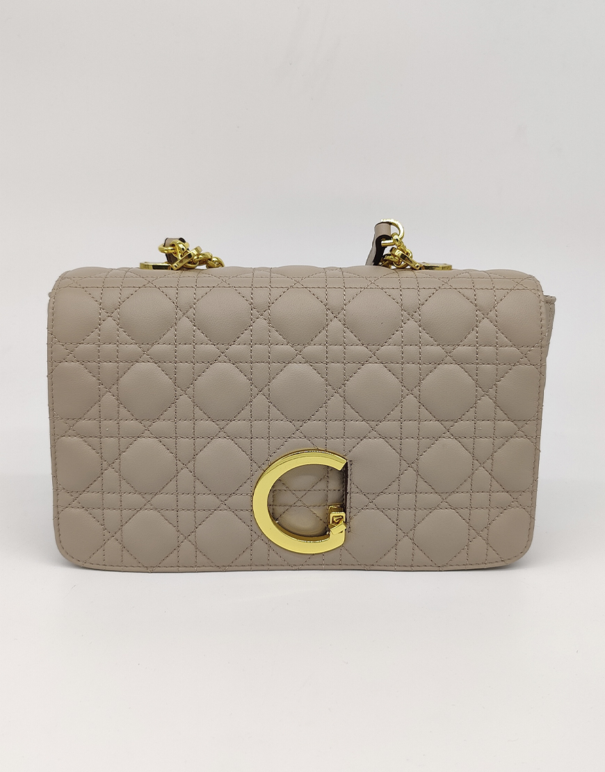 Gasshie сумка в бежевой коже, стёганная с золотым логотипом.