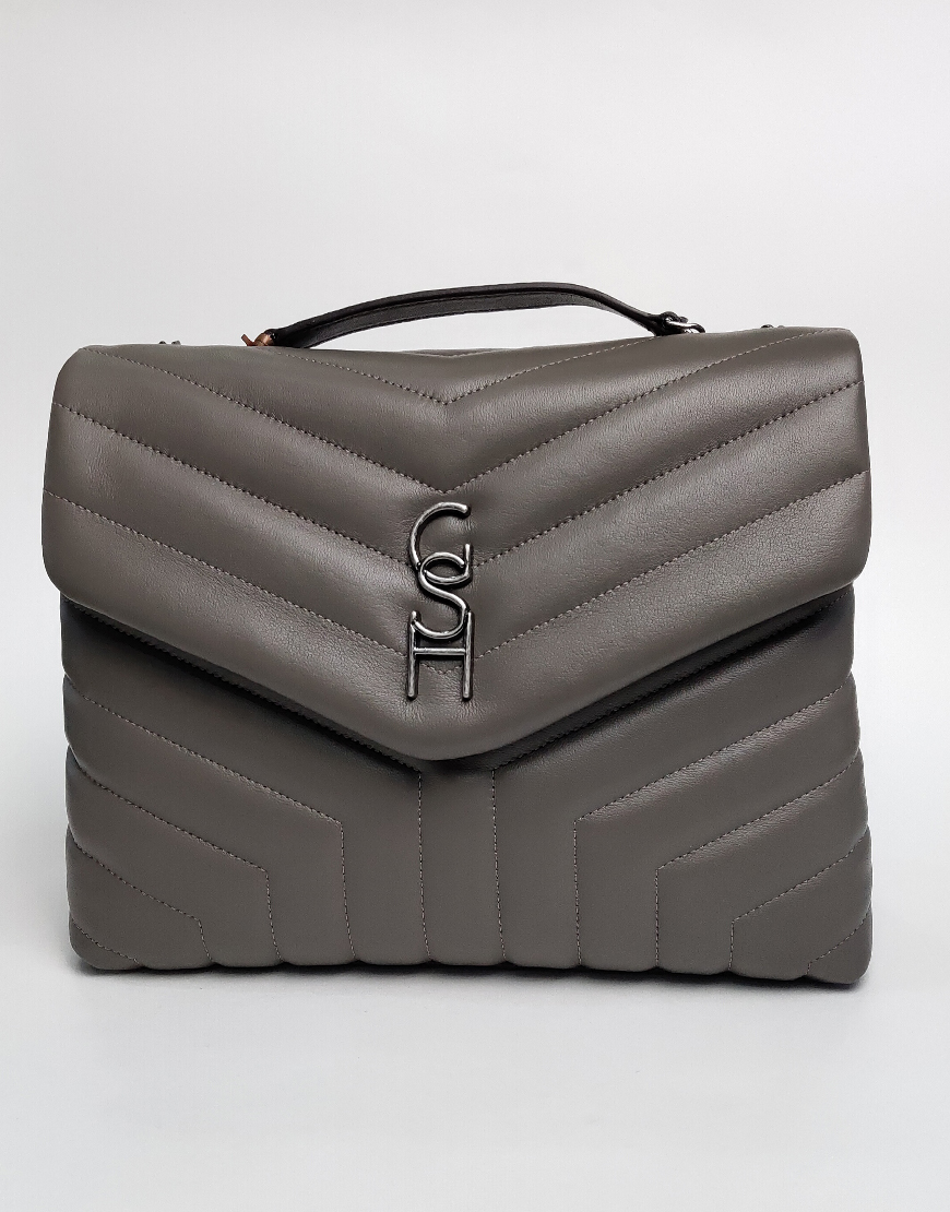 Gasshie сумка в серой коже, стёганная.