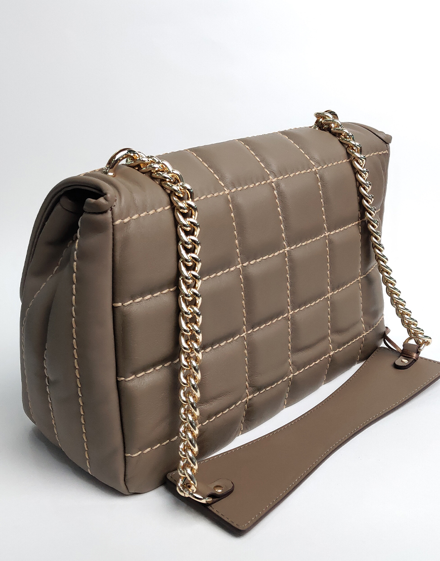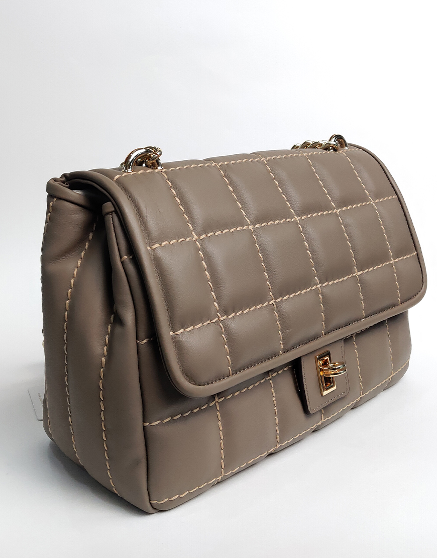 Gasshie сумка в коже цвета бизон, стёганная со строчкой.