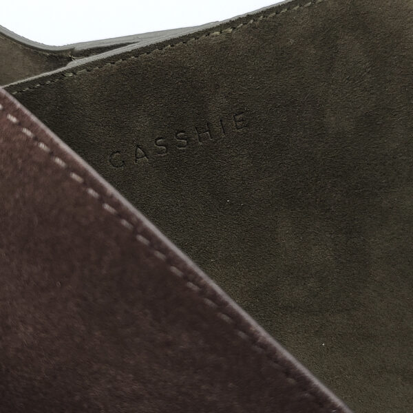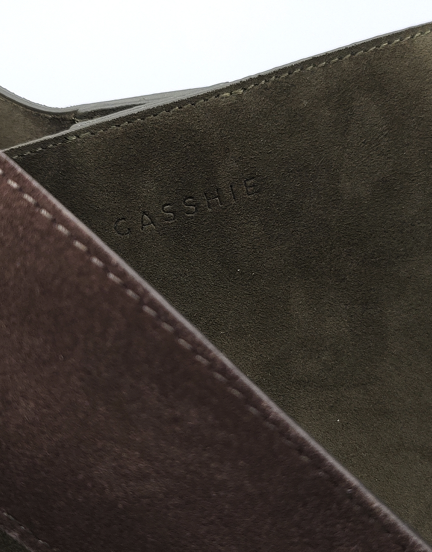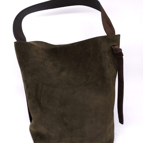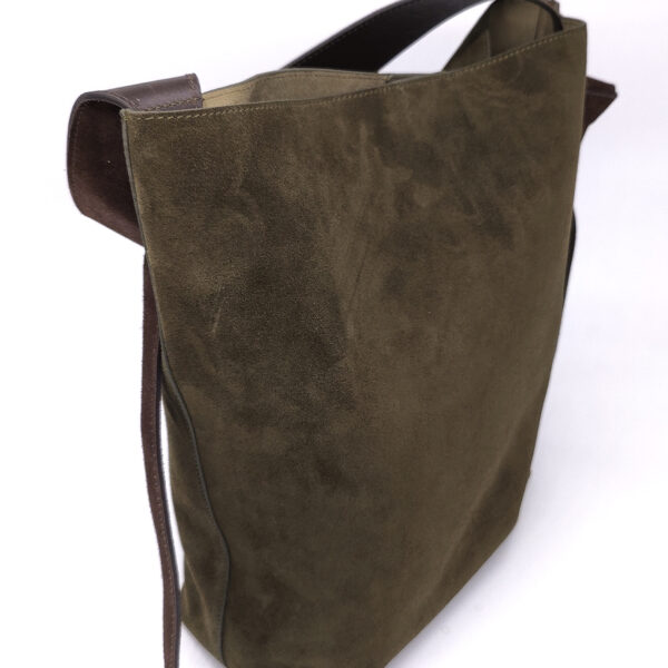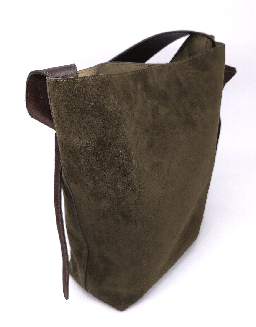 Gasshie сумка в зелёной замше с коричневой ручкой.