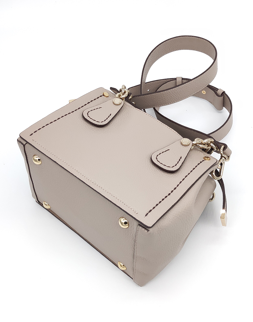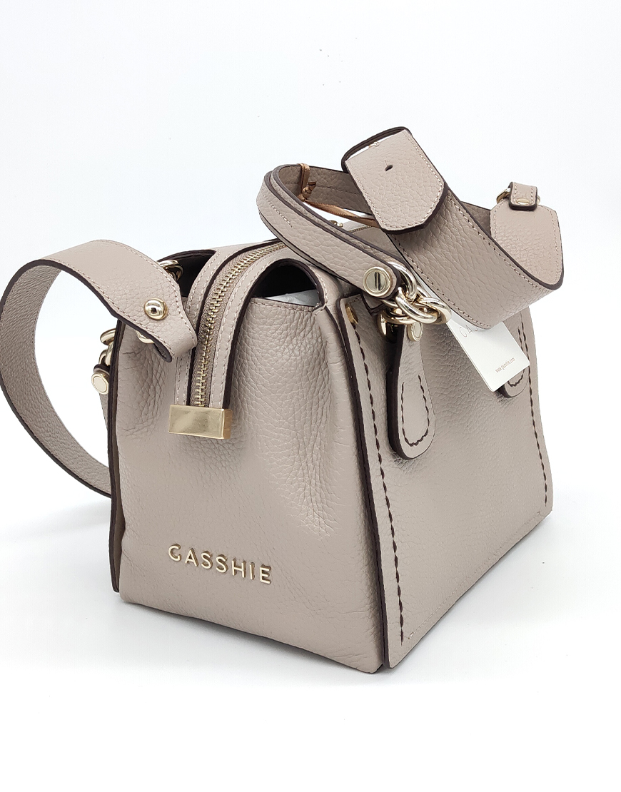 Gasshie сумочка в бежевой коже, с золотой фурнитурой.