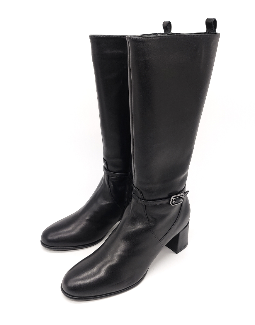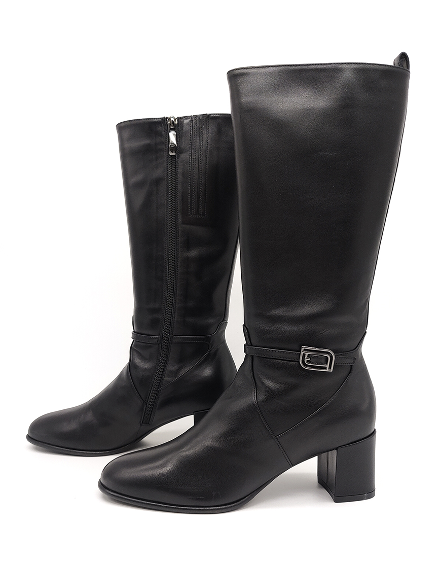 GF сапоги 3/4 в чёрной коже. (полумех)