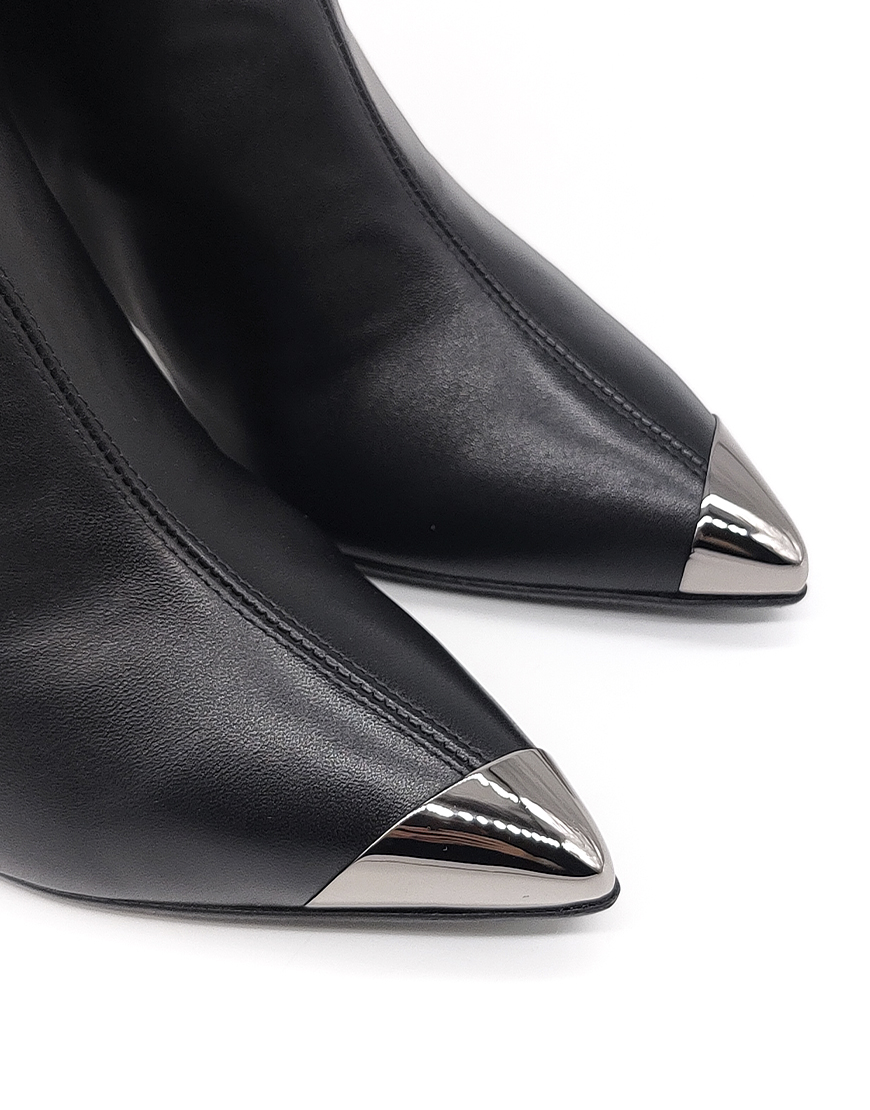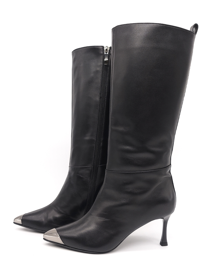 GF сапоги на шпильке в чёрной коже, со стальным носом.