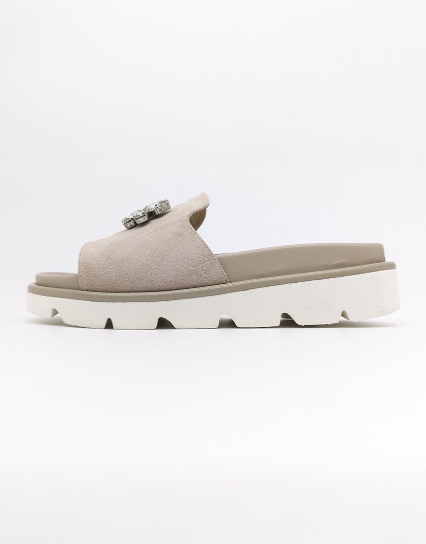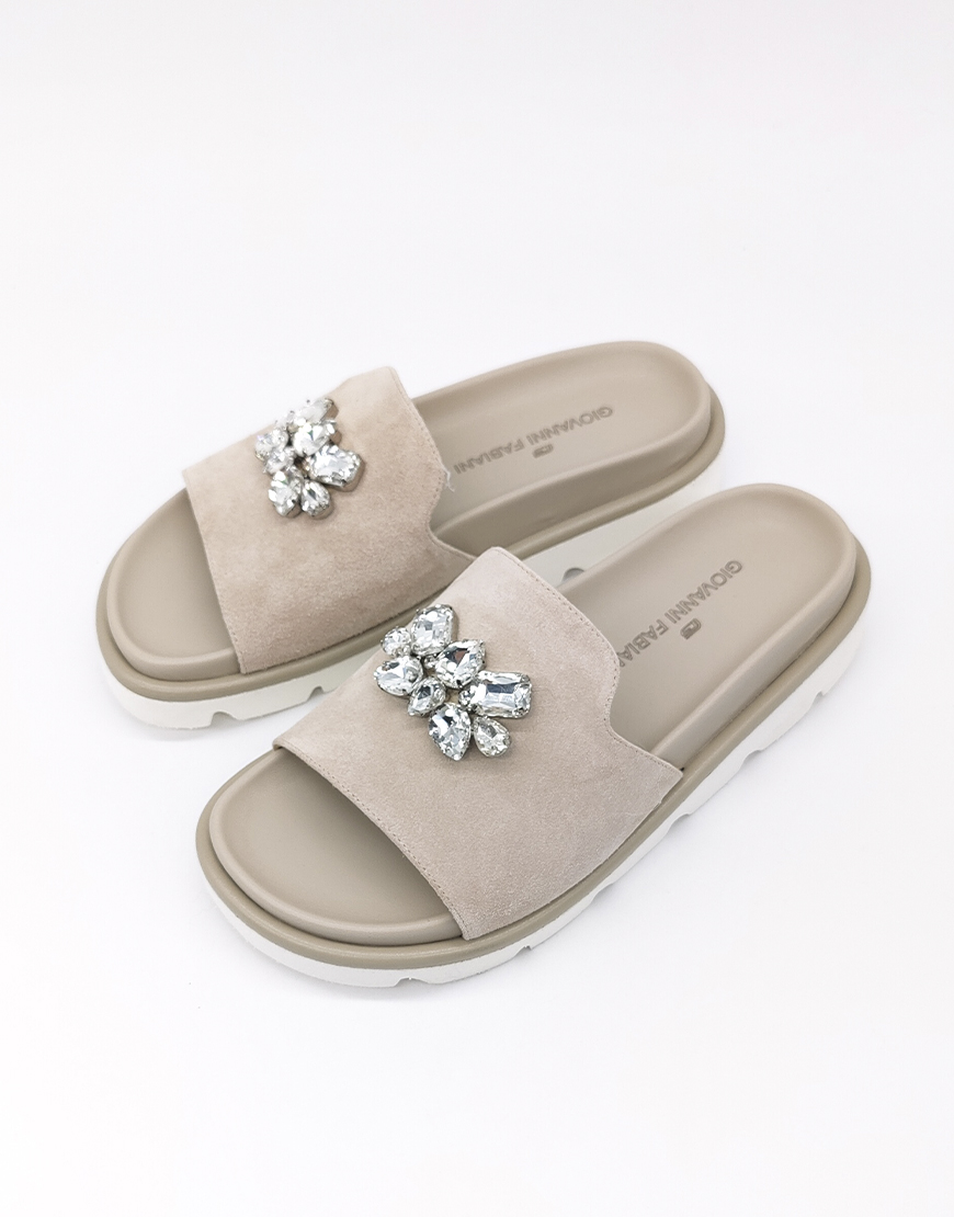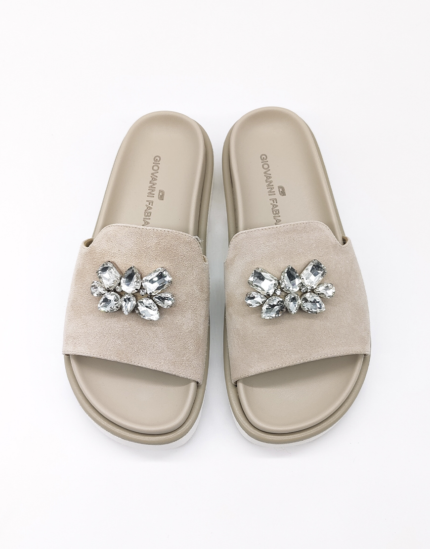GF шлёпанцы в бежевой замше, с камнями.