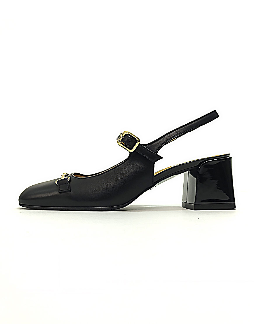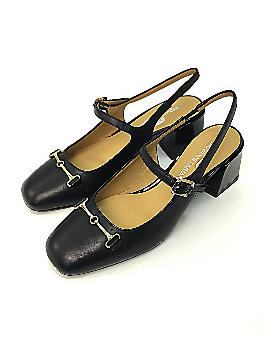 GF слингбэки в чёрной коже, с ремешком.