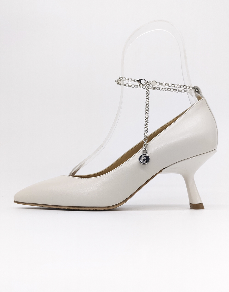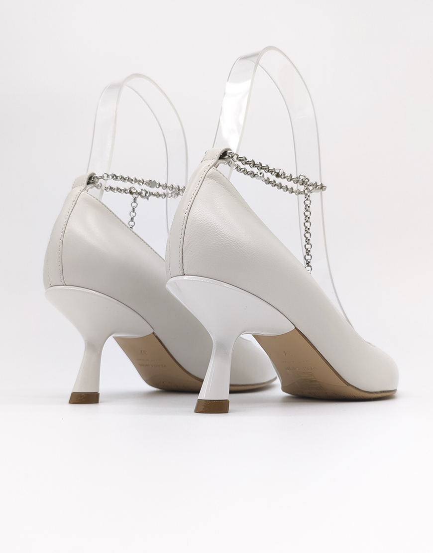 GF Туфли на рюмке, в жемчужной коже, с цепью.