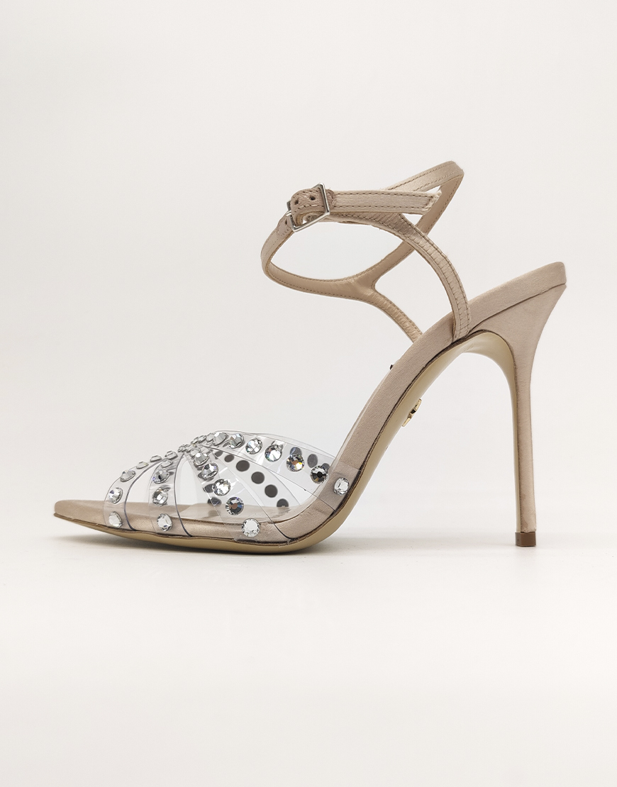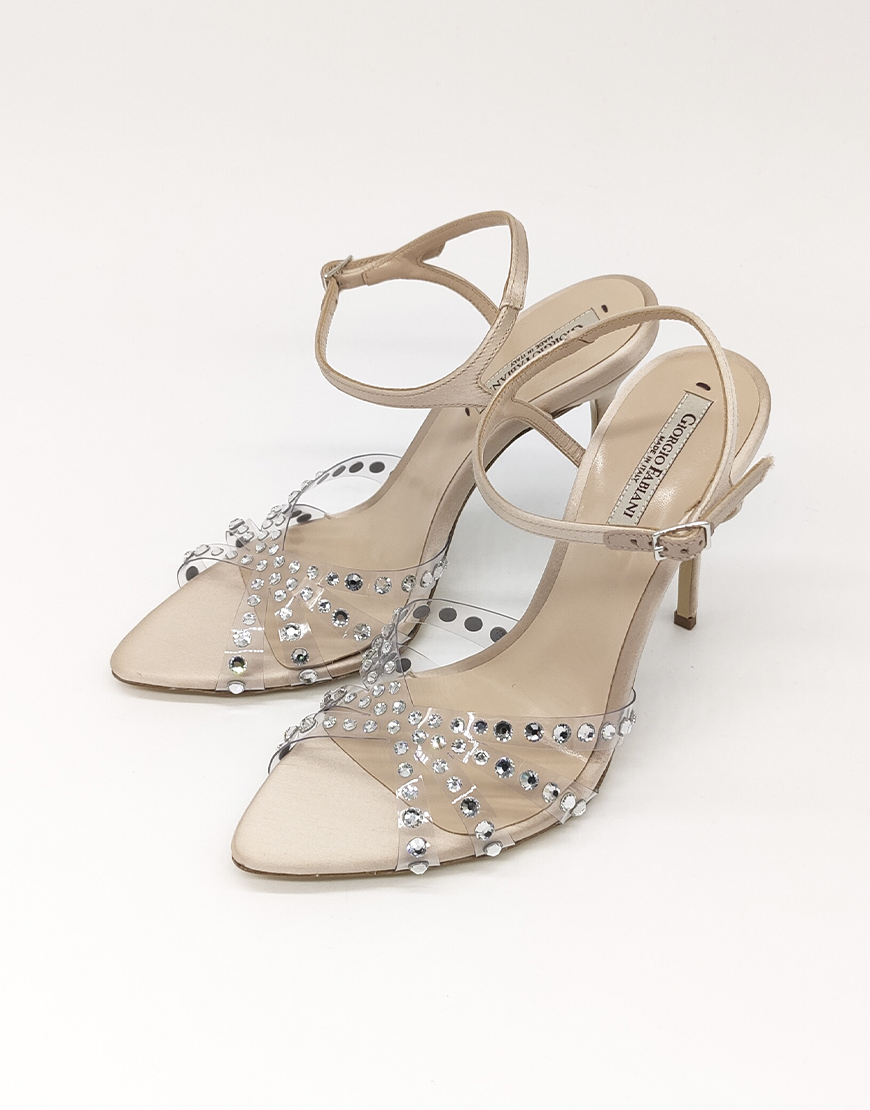 Giorgio Fabiani босоножки в бежевом сатине, с силиконом.