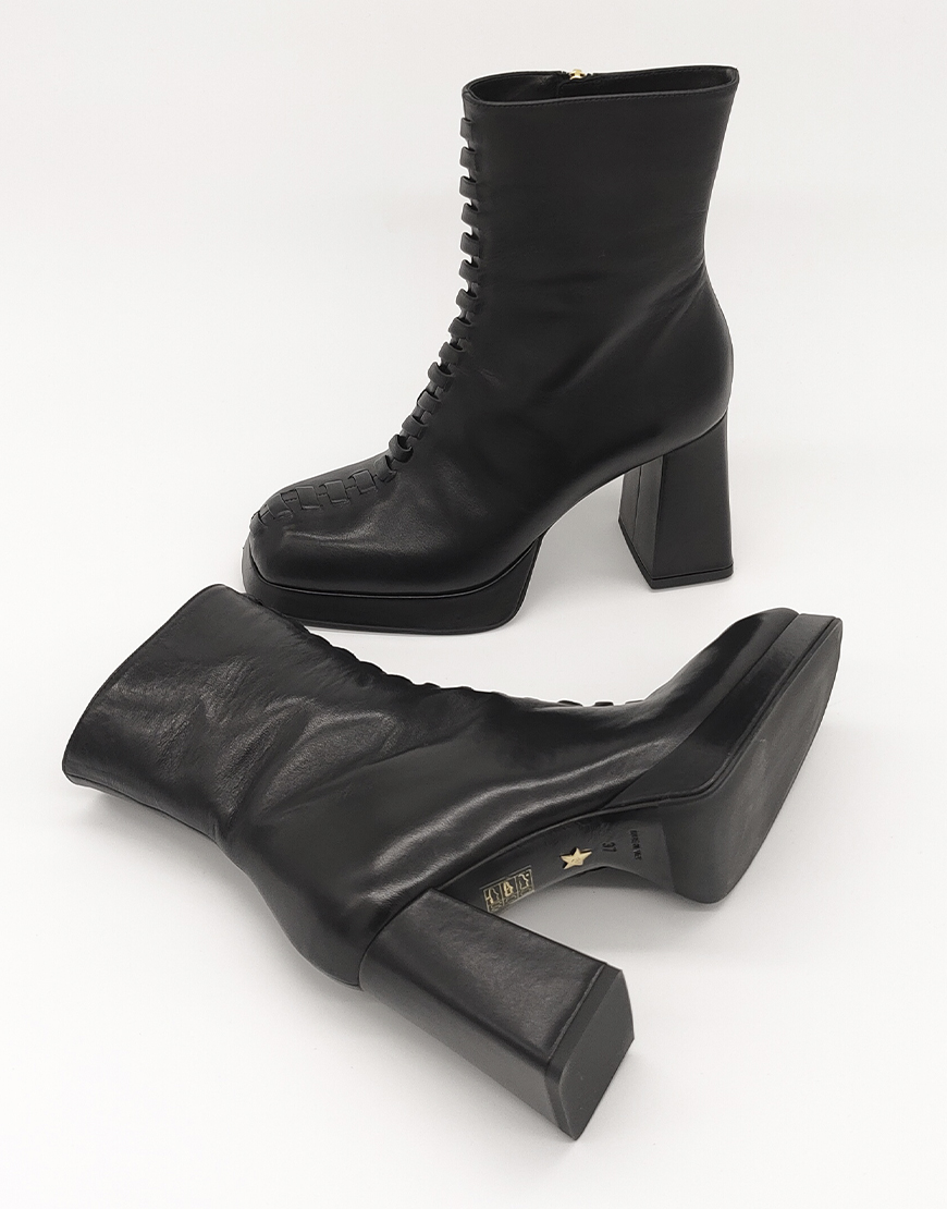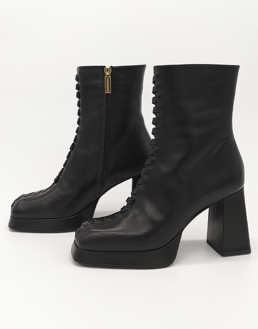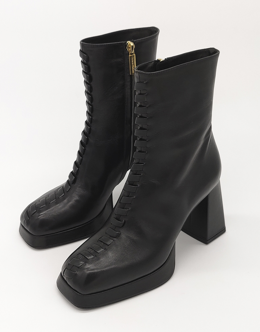 Giorgio Fabiani полусапожки на платформе в чёрной коже, со шнурками.