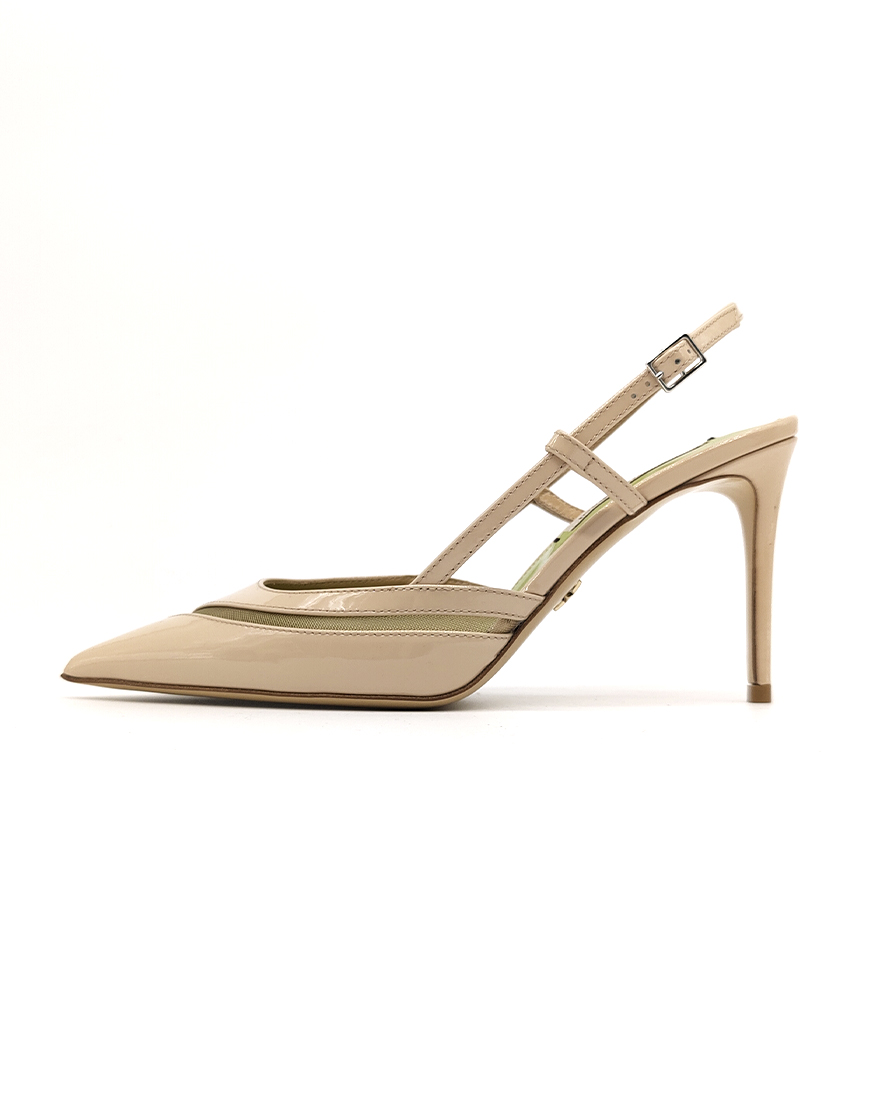 Giorgio Fabiani слингбэки в бежевом лаке, с сеточкой.