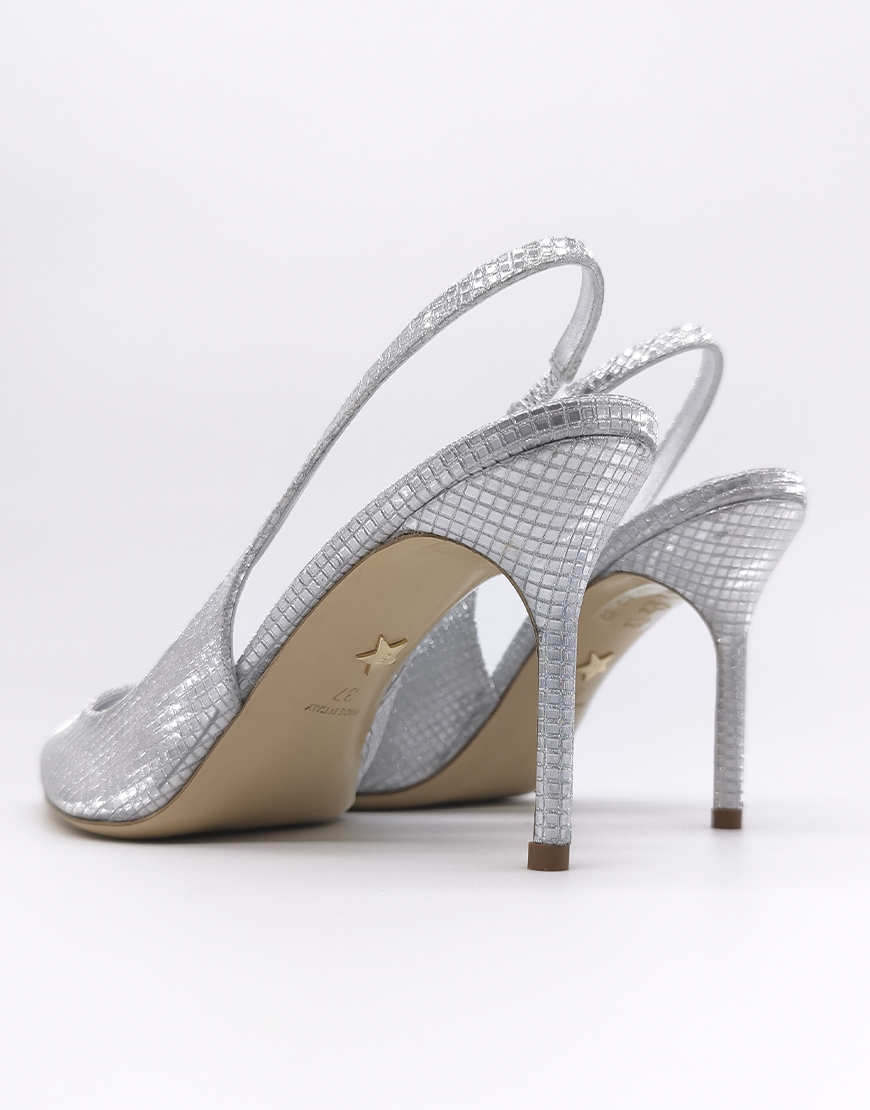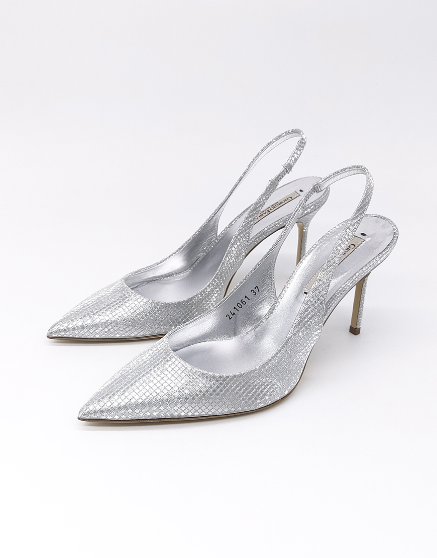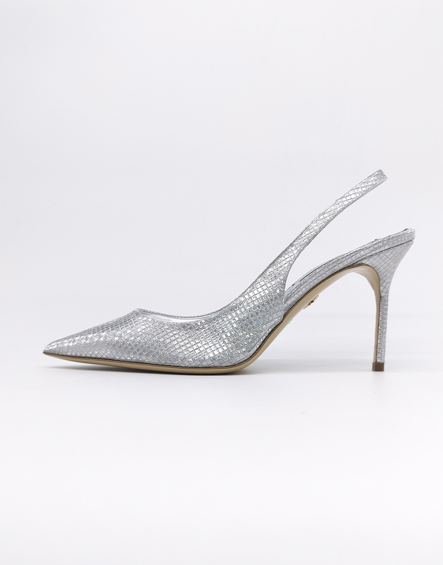 Giorgio Fabiani слингбэки в серебристой вафельной коже.