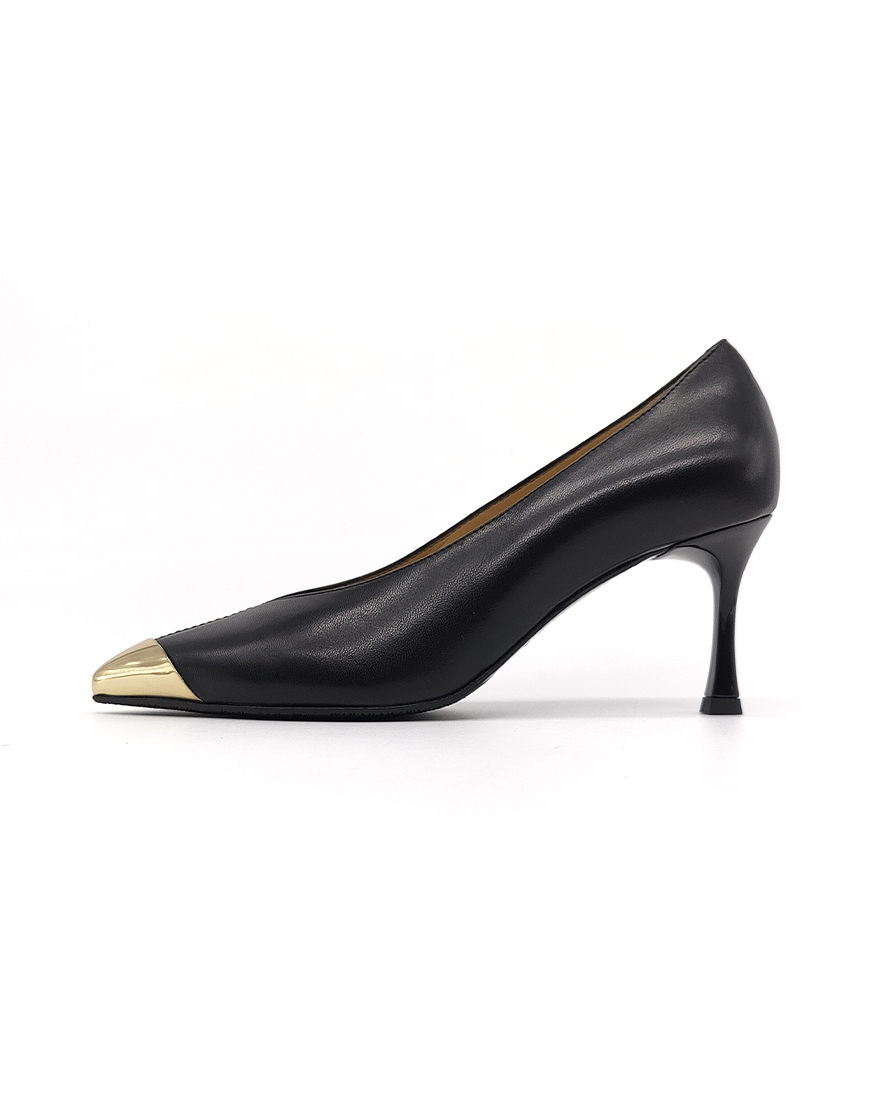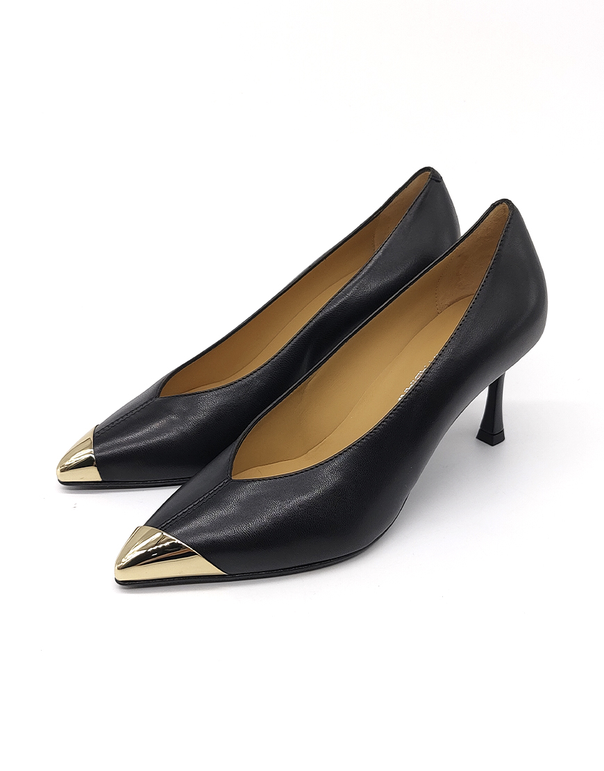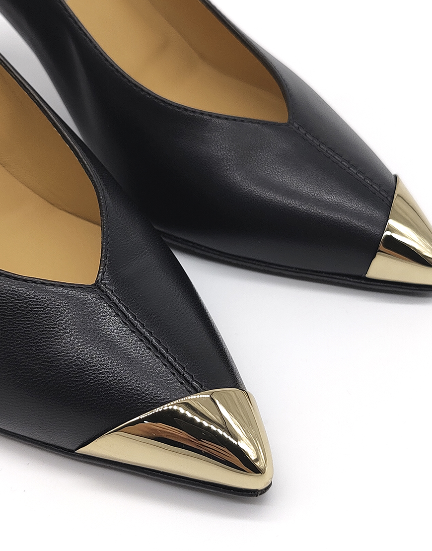 Giovanni Fabiani туфли в чёрной коже, на носу золотая вставка.