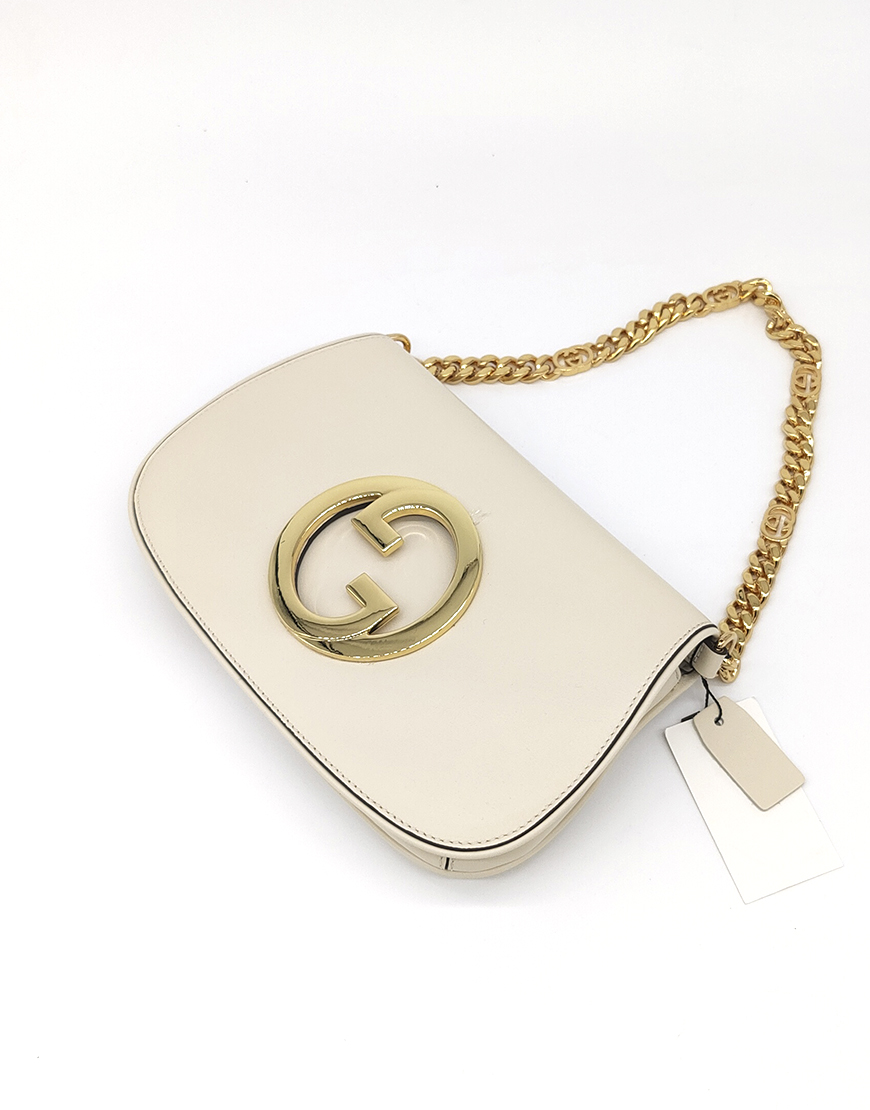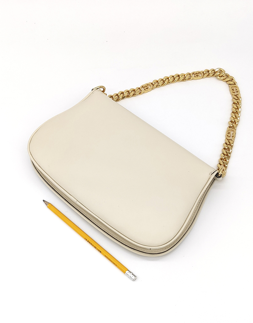 Gucci сумка в молочной коже с цепью.