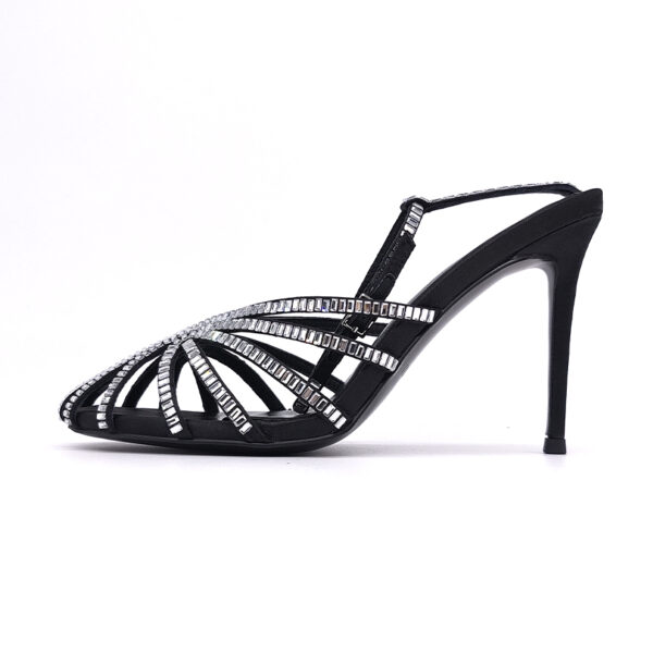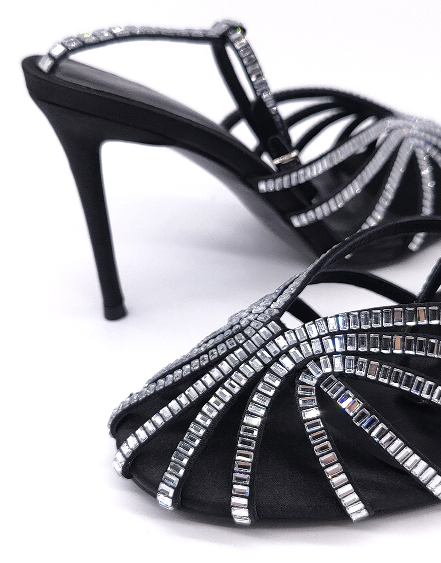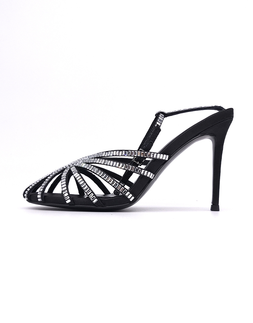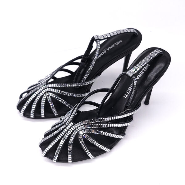 HS слингбэки в чёрной замше, в серебристых камнях.