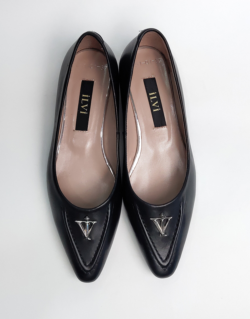 Ilvi балетки в чёрной коже, с пряжкой IV.