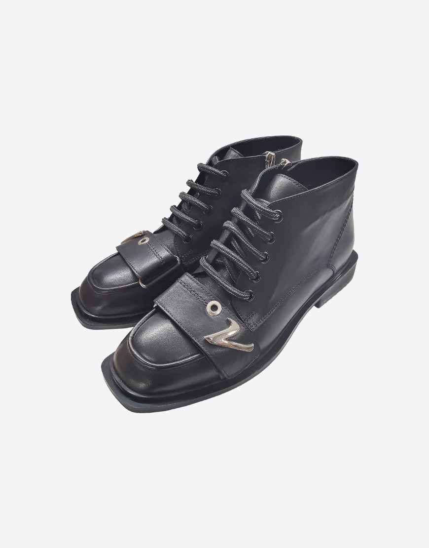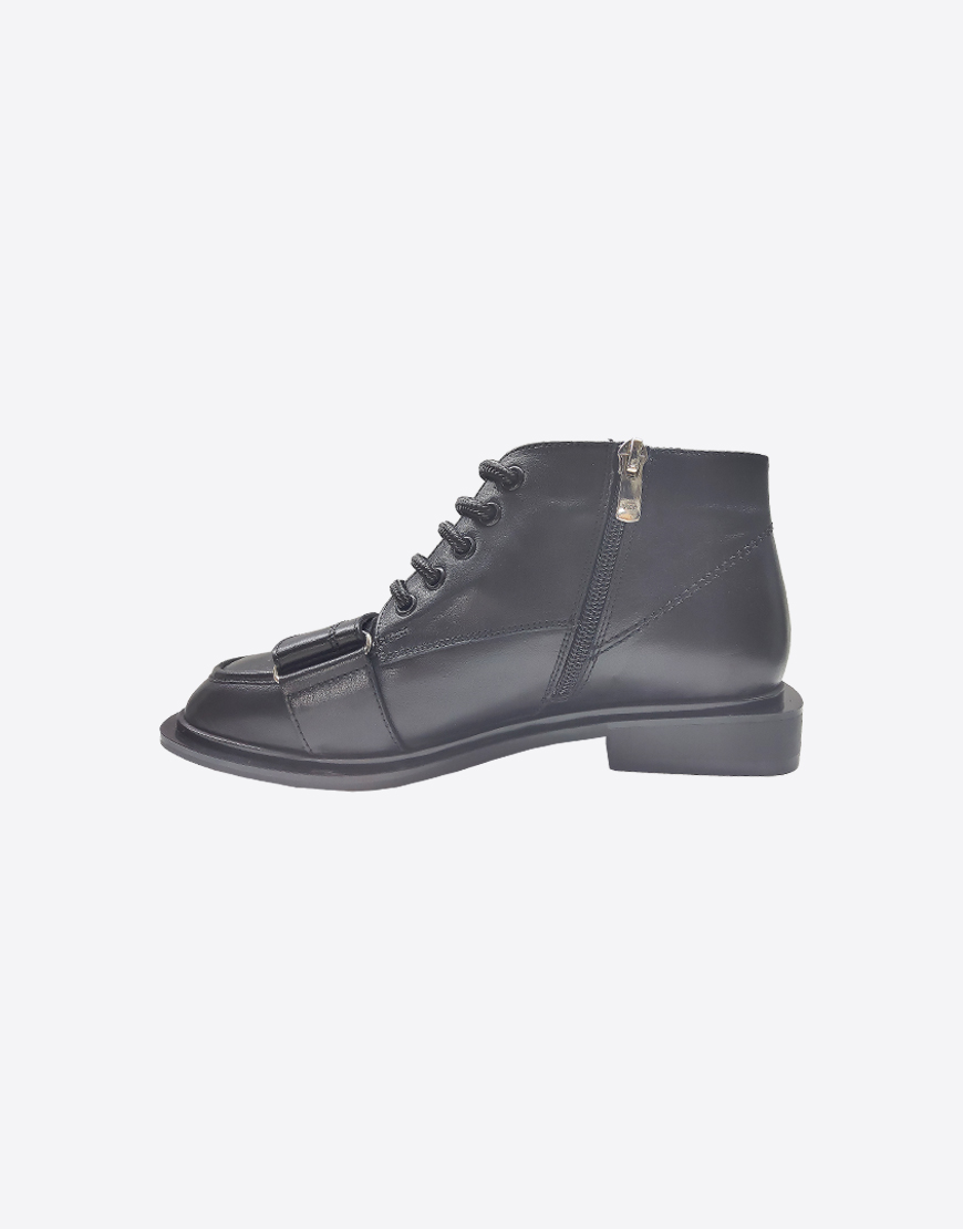 ILVI ботинки на низком, в чёрной коже, на липучках.