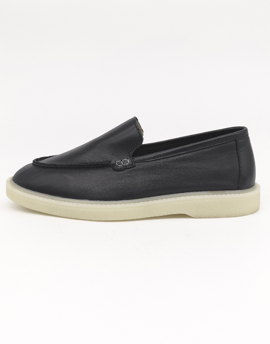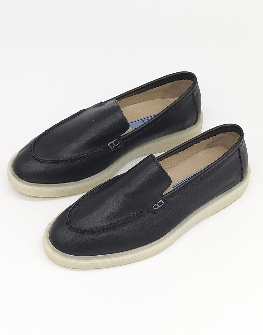 ILVI лоферы в чёрной коже, с белой подошвой.