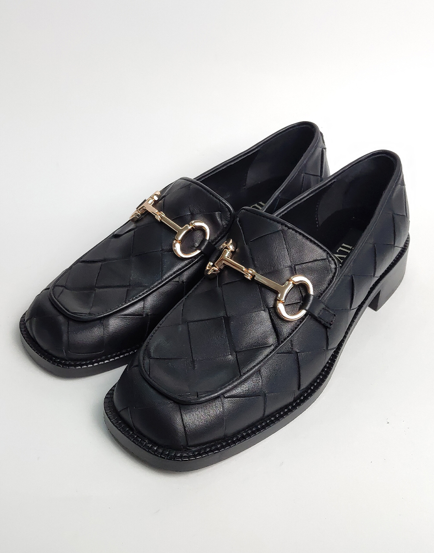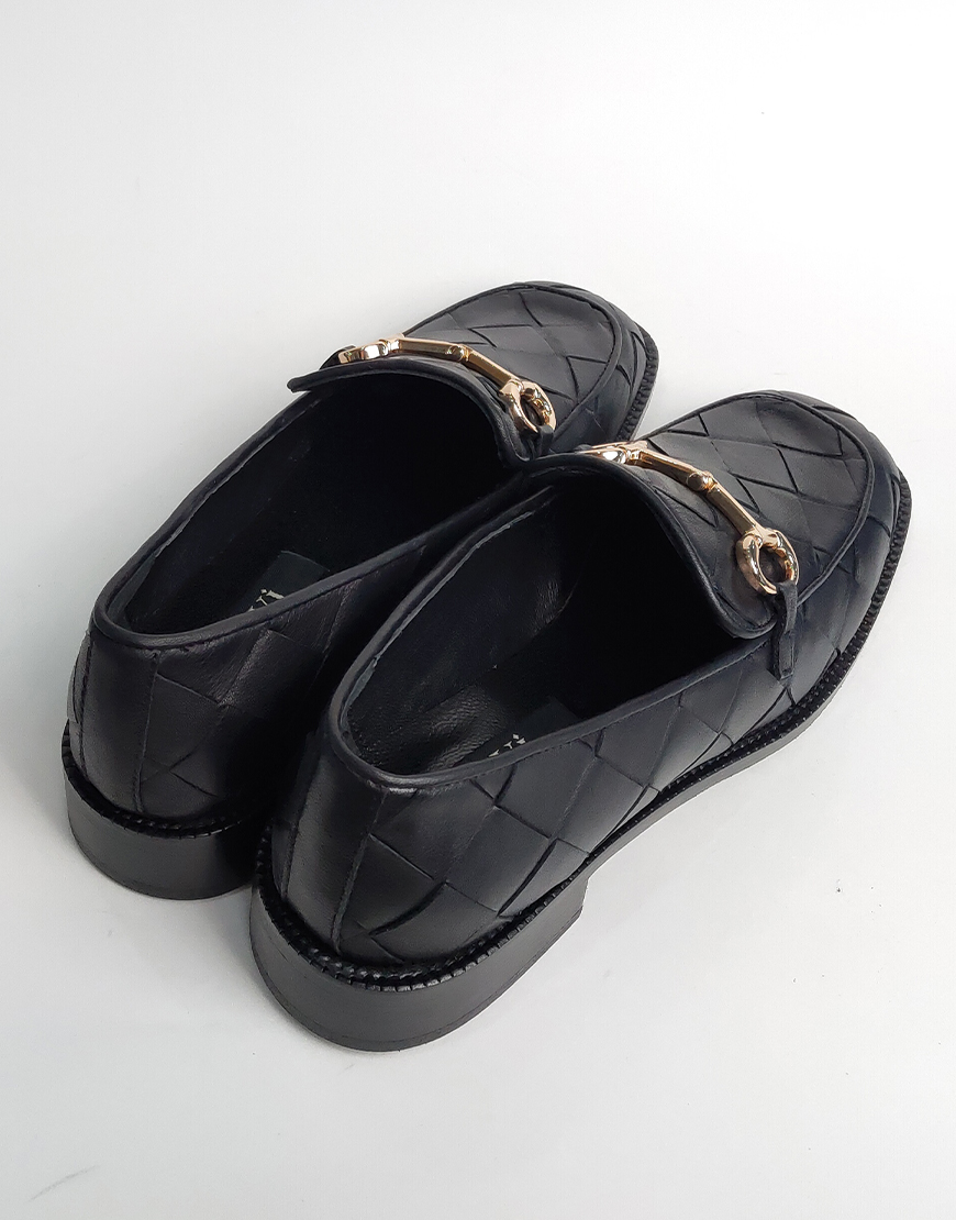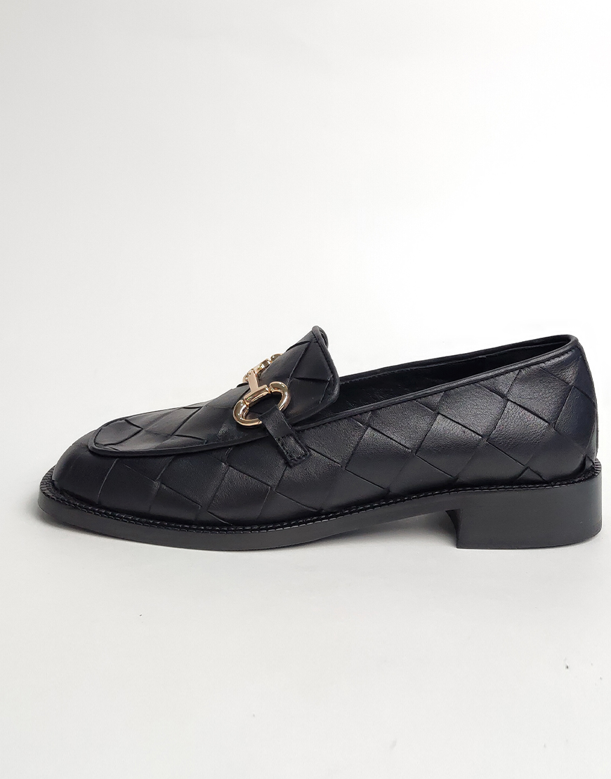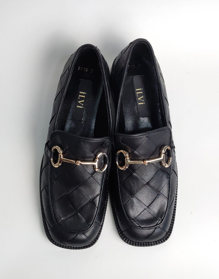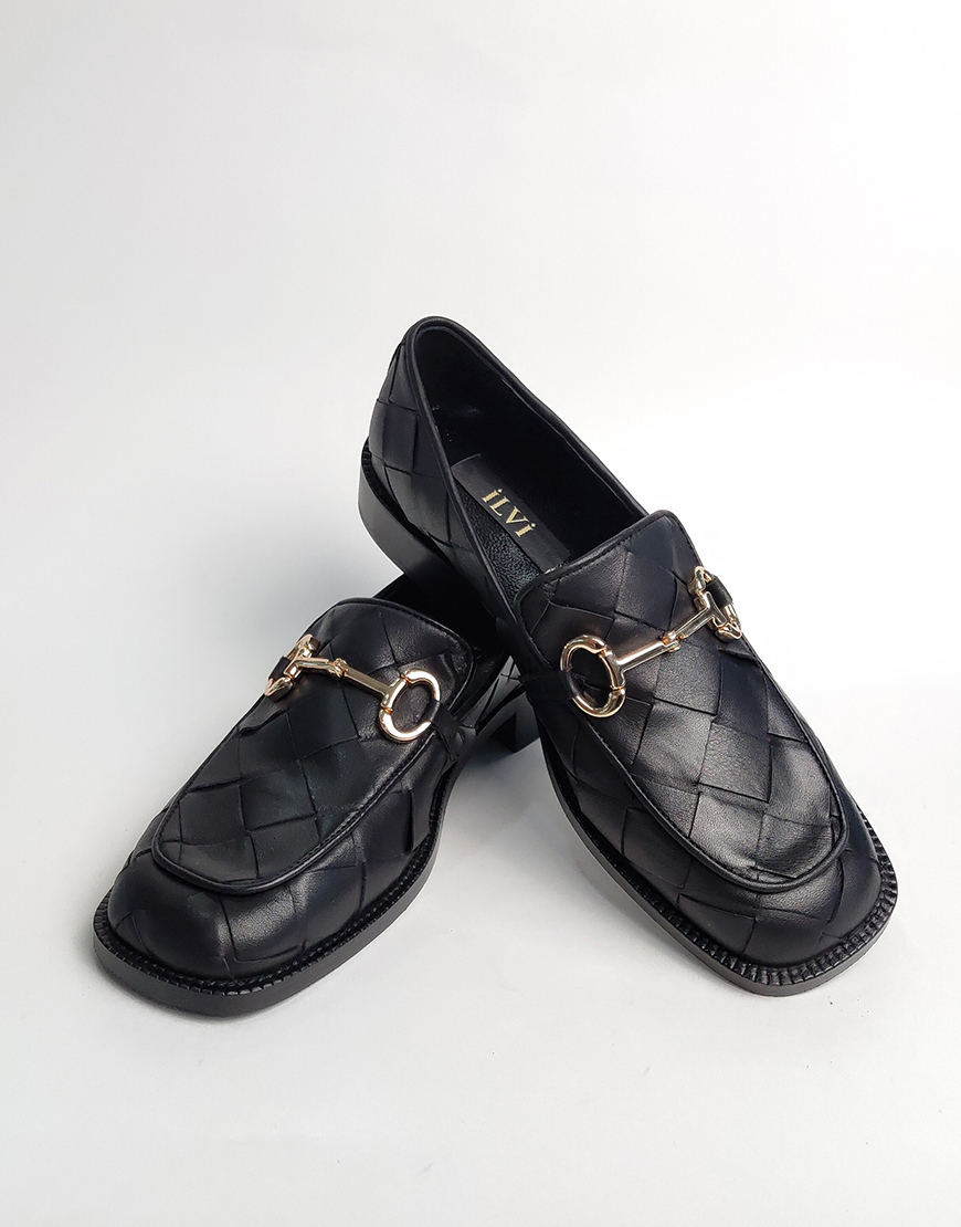 Ilvi лоферы в чёрной, плетённой коже, с золотой пряжкой.