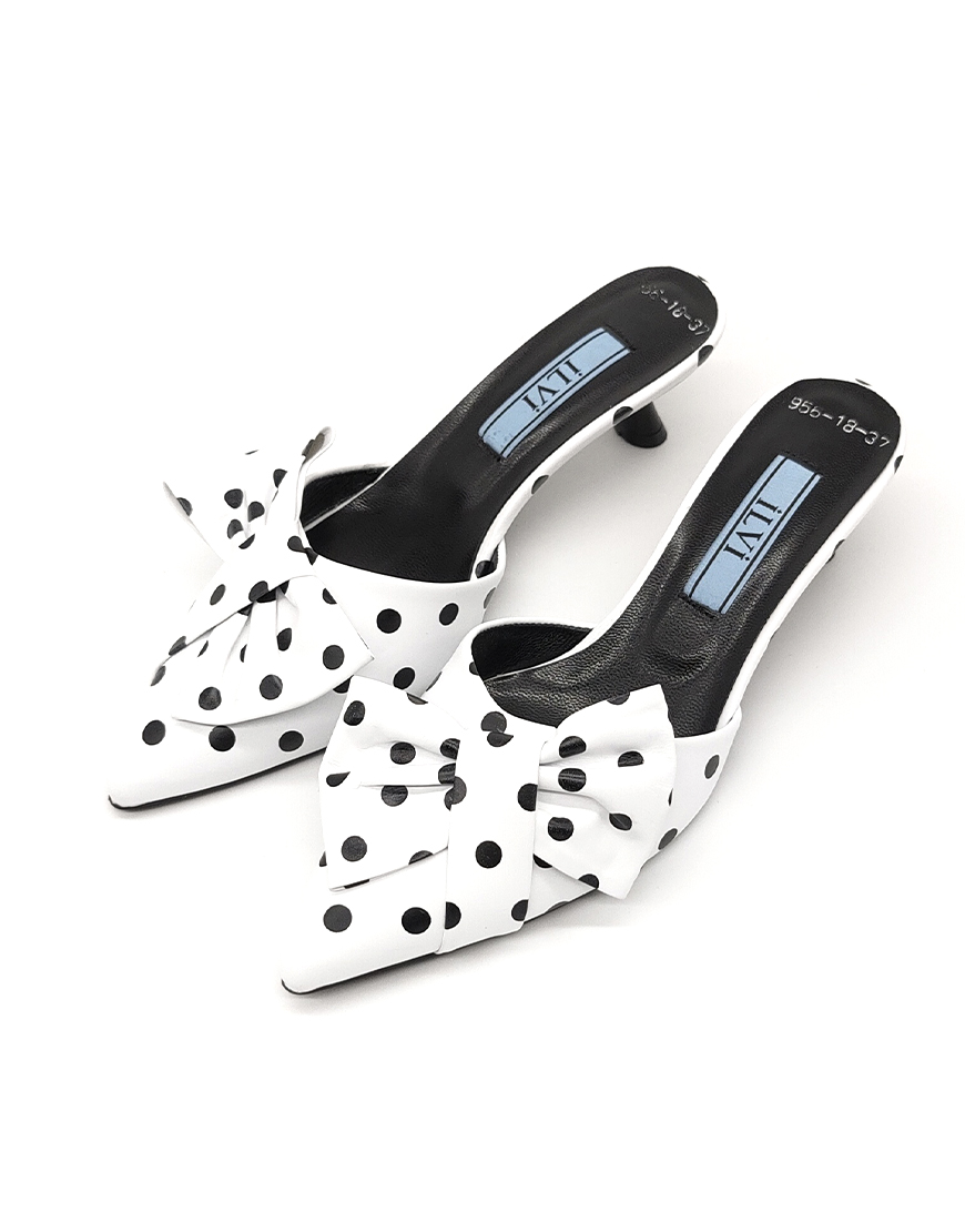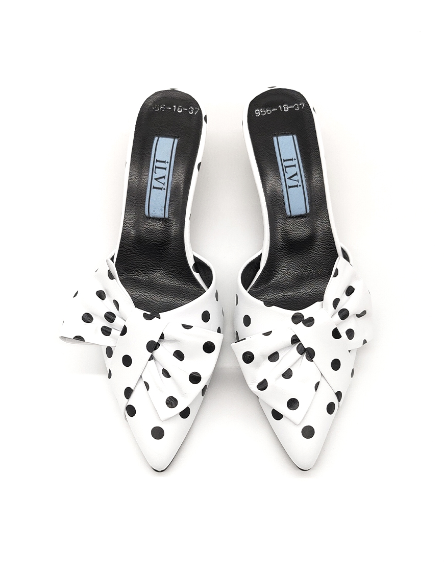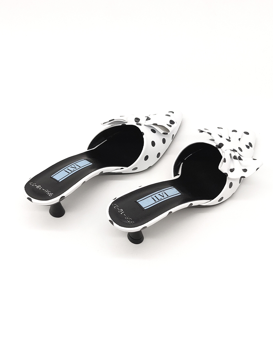 Ilvi мюли на рюмке, в чёрно-белый горошек.