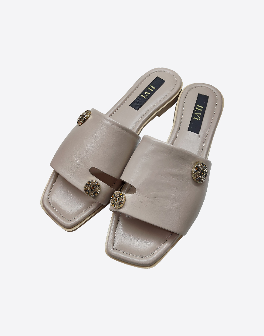 ILVI шлёпки на низком в бежевой коже.