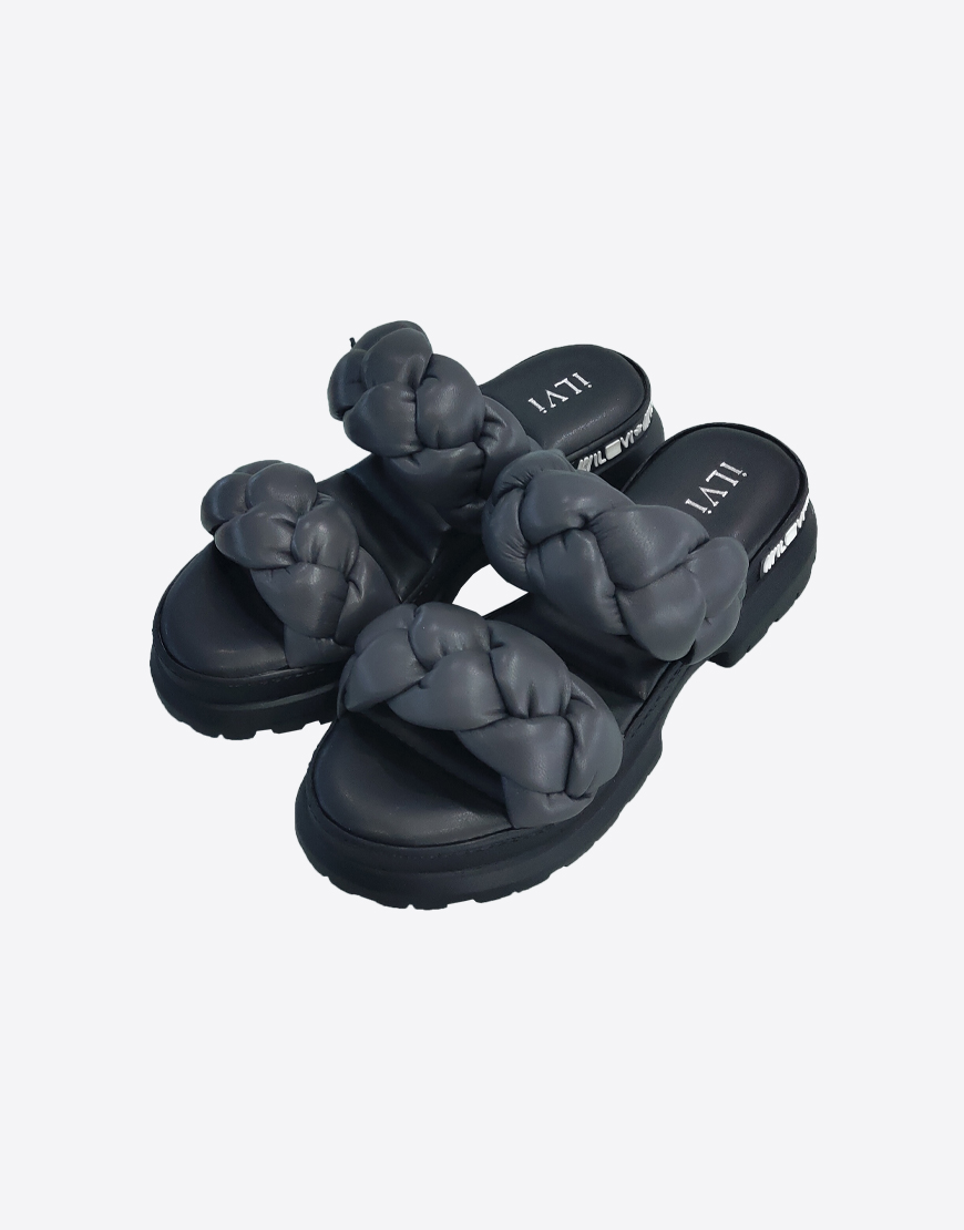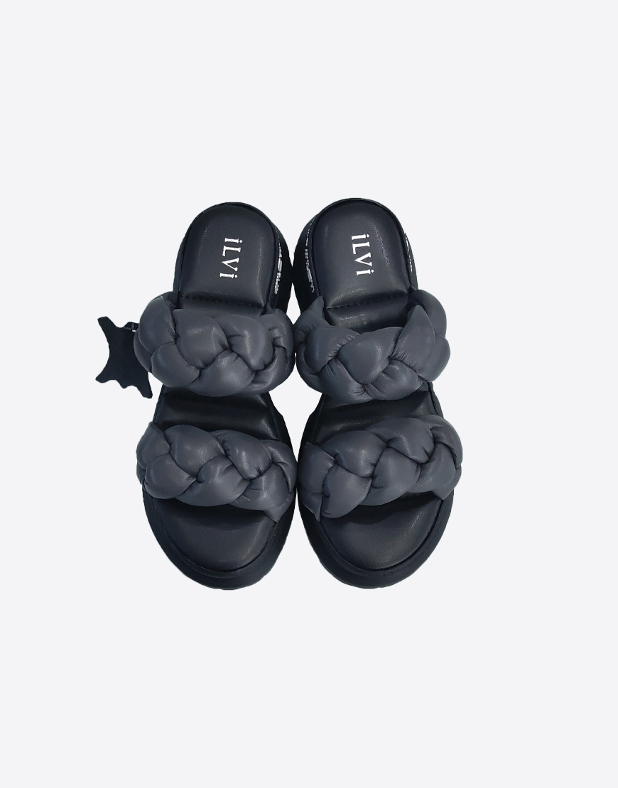 ILVI шлёпки в чёрной коже, с косой.