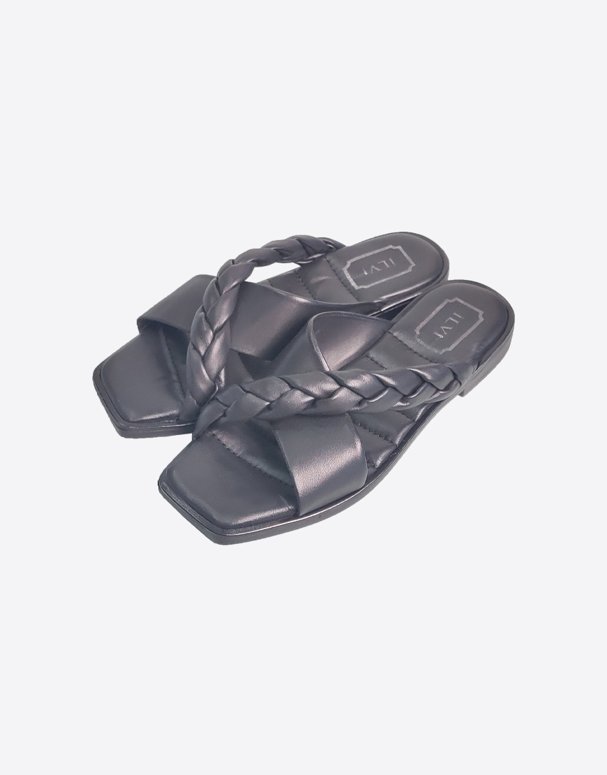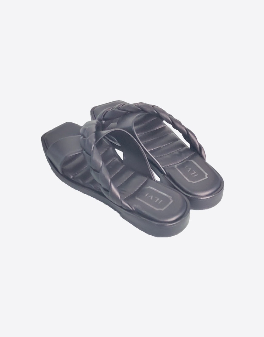 ILVI шлёпки в чёрной коже, с косой.