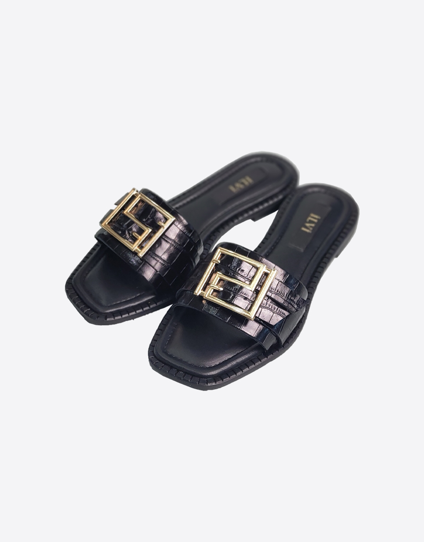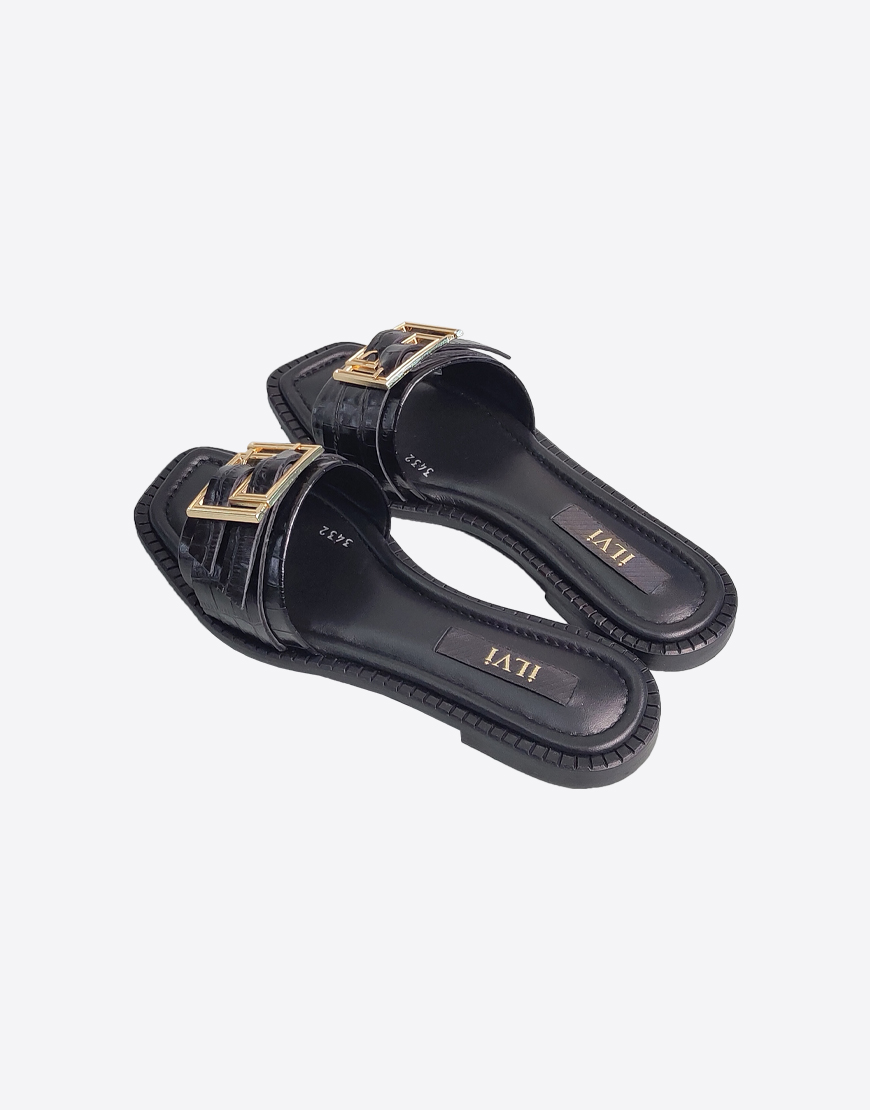 ILVI шлёпки в чёрной коже, с золотой пряжкой.