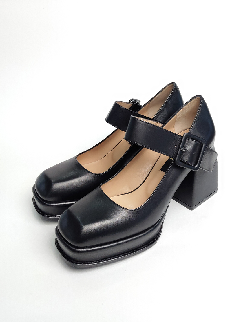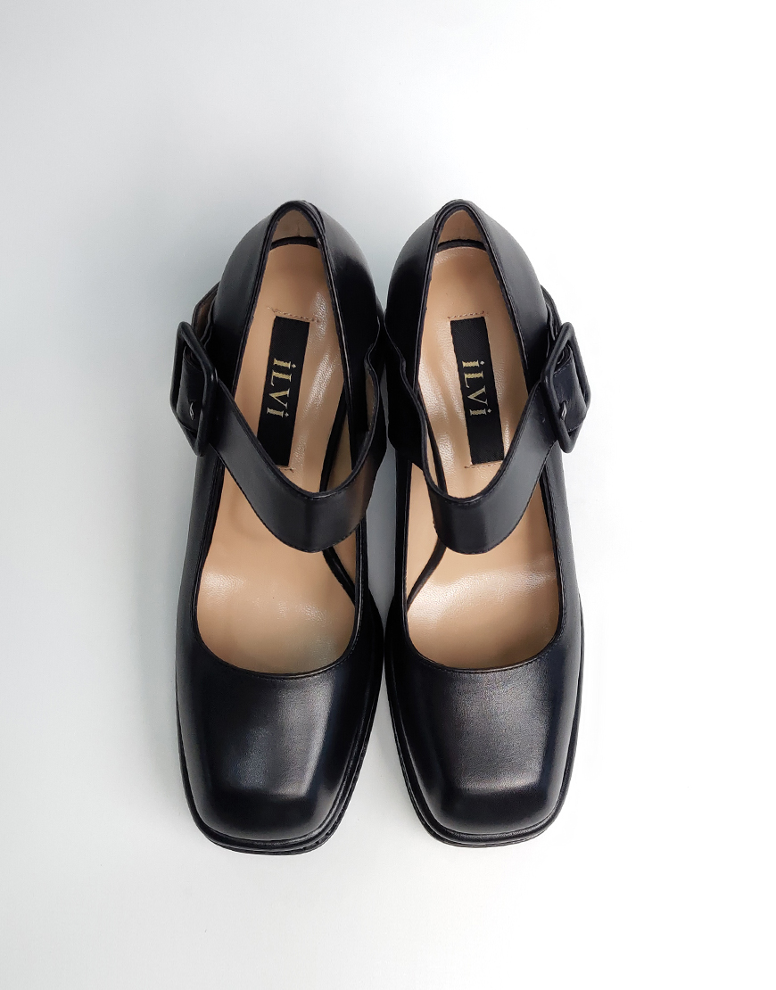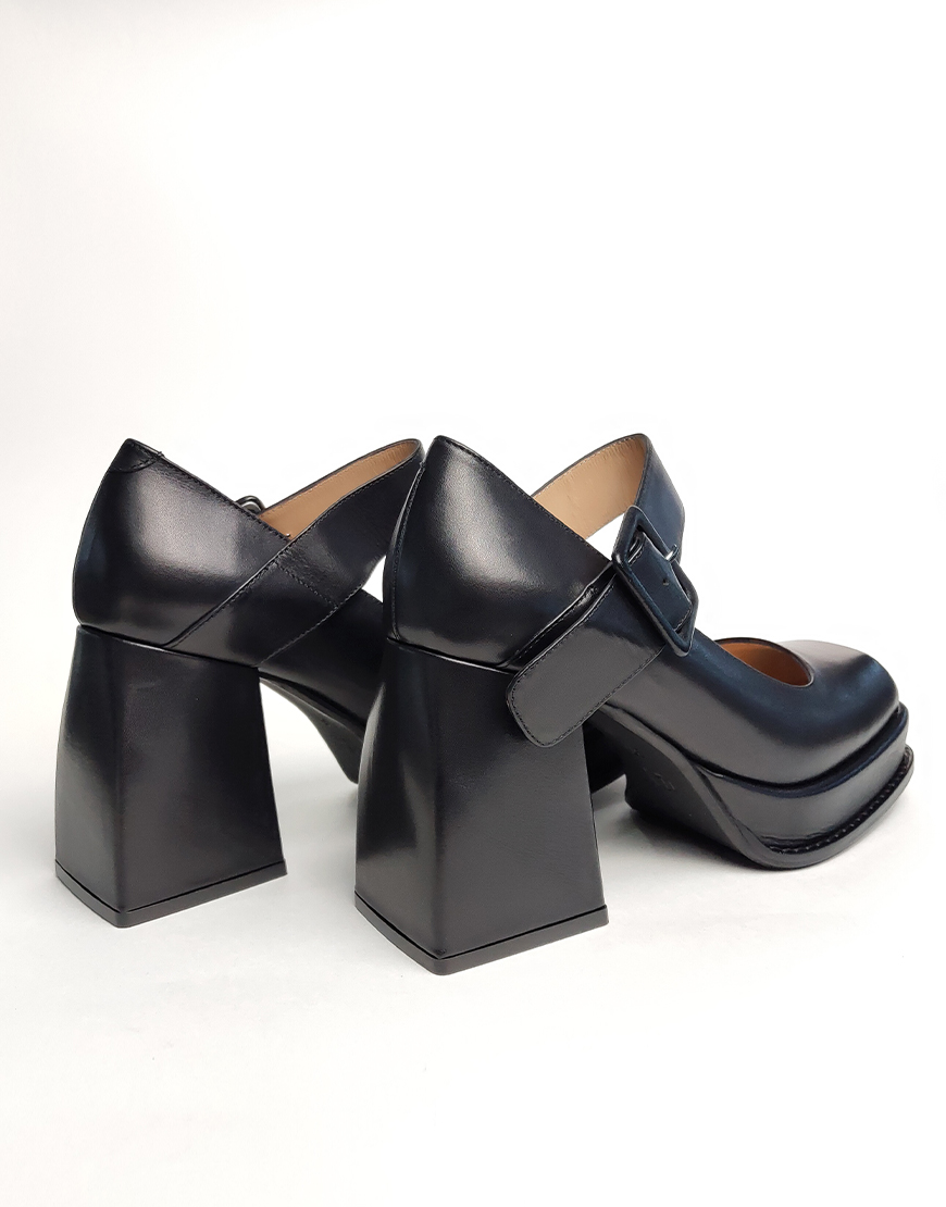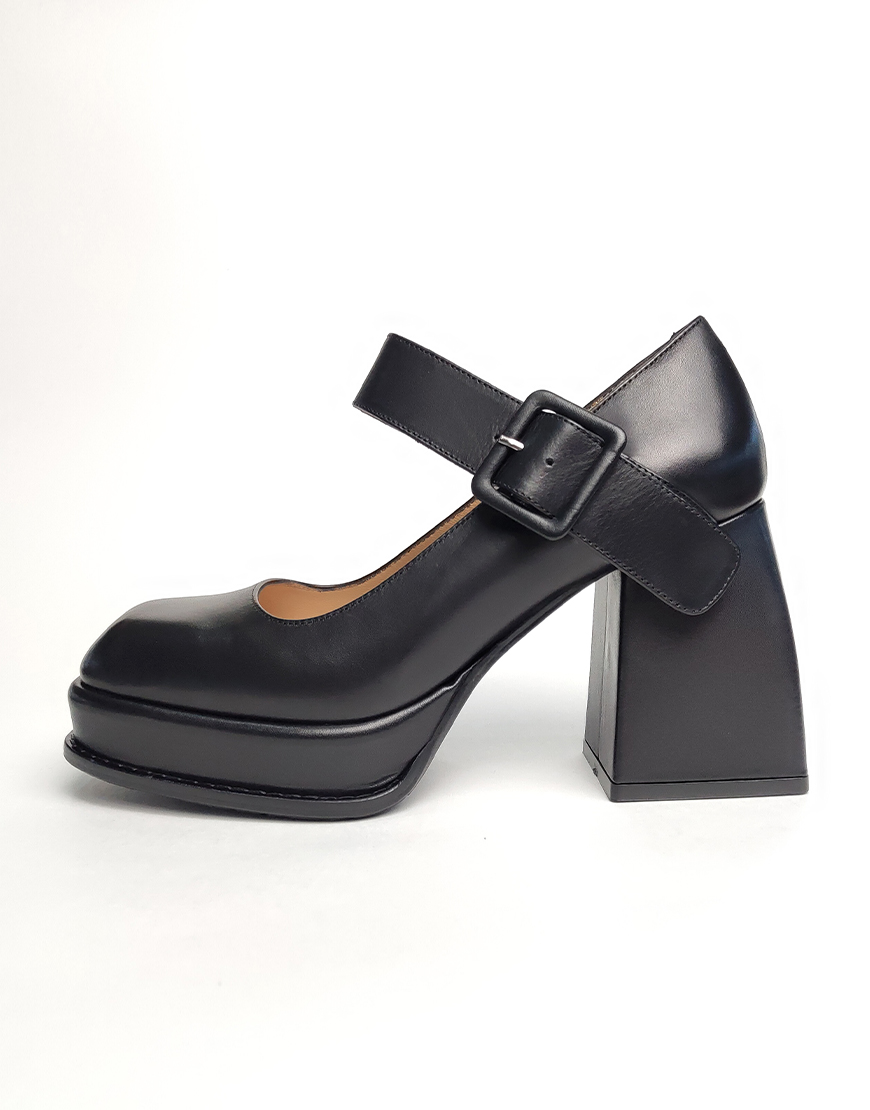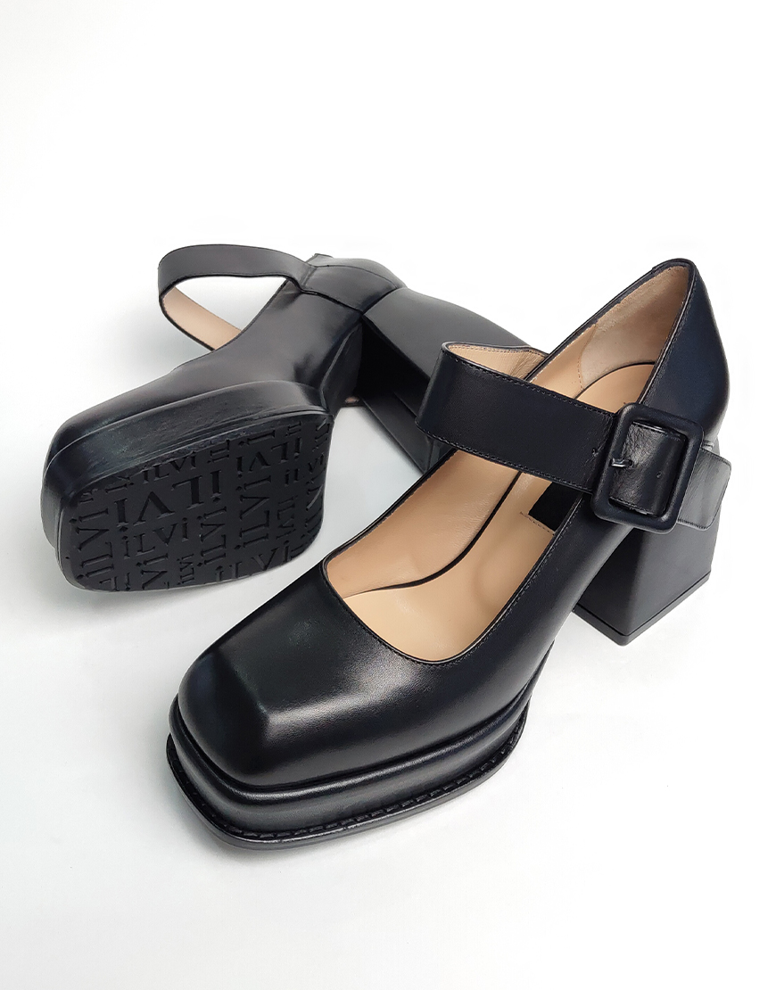 ILVI туфли на плтформе, в чёрной коже, с ремешком.