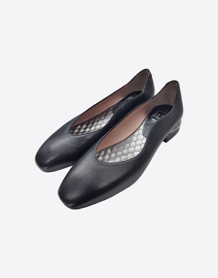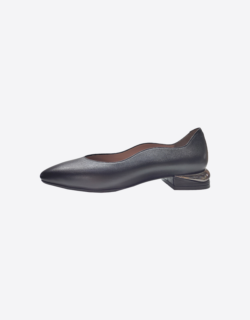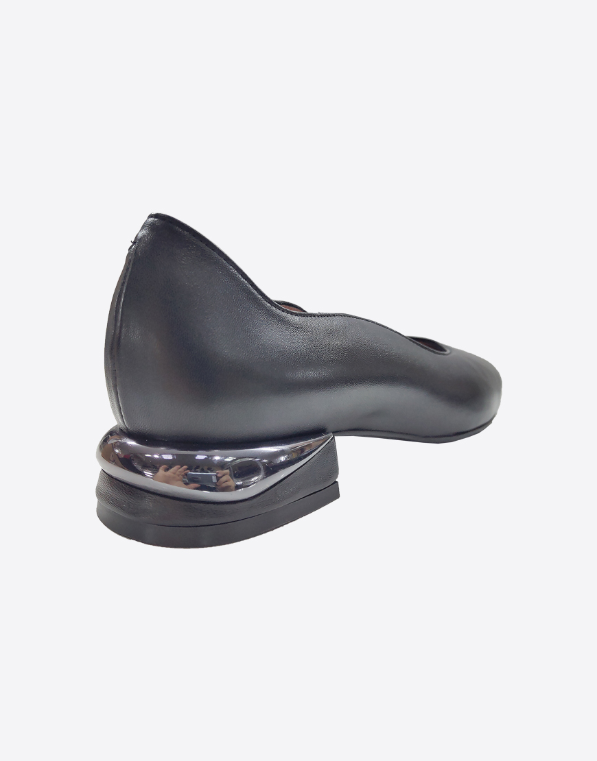 ILVI туфли в чёрной коже, стальной низкий каблук.