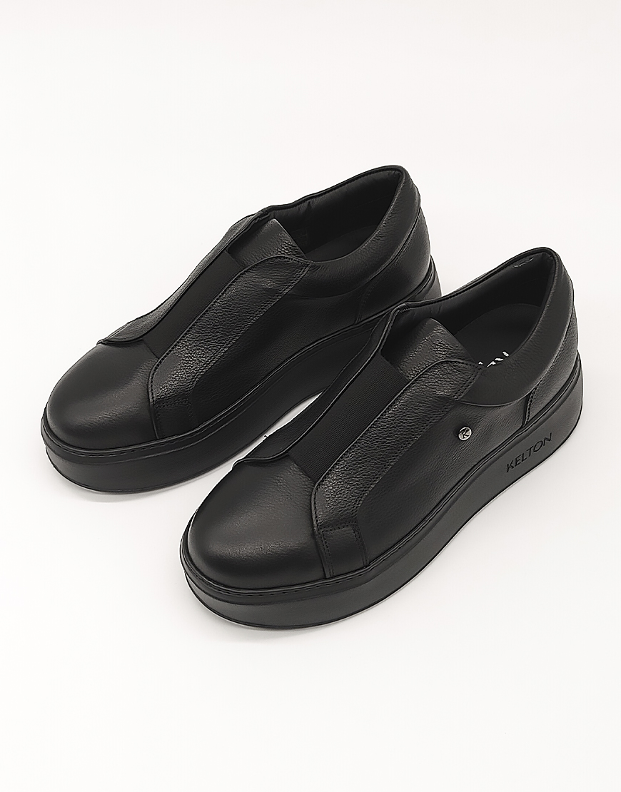 Kelton кеды в чёрной коже, на резинках.