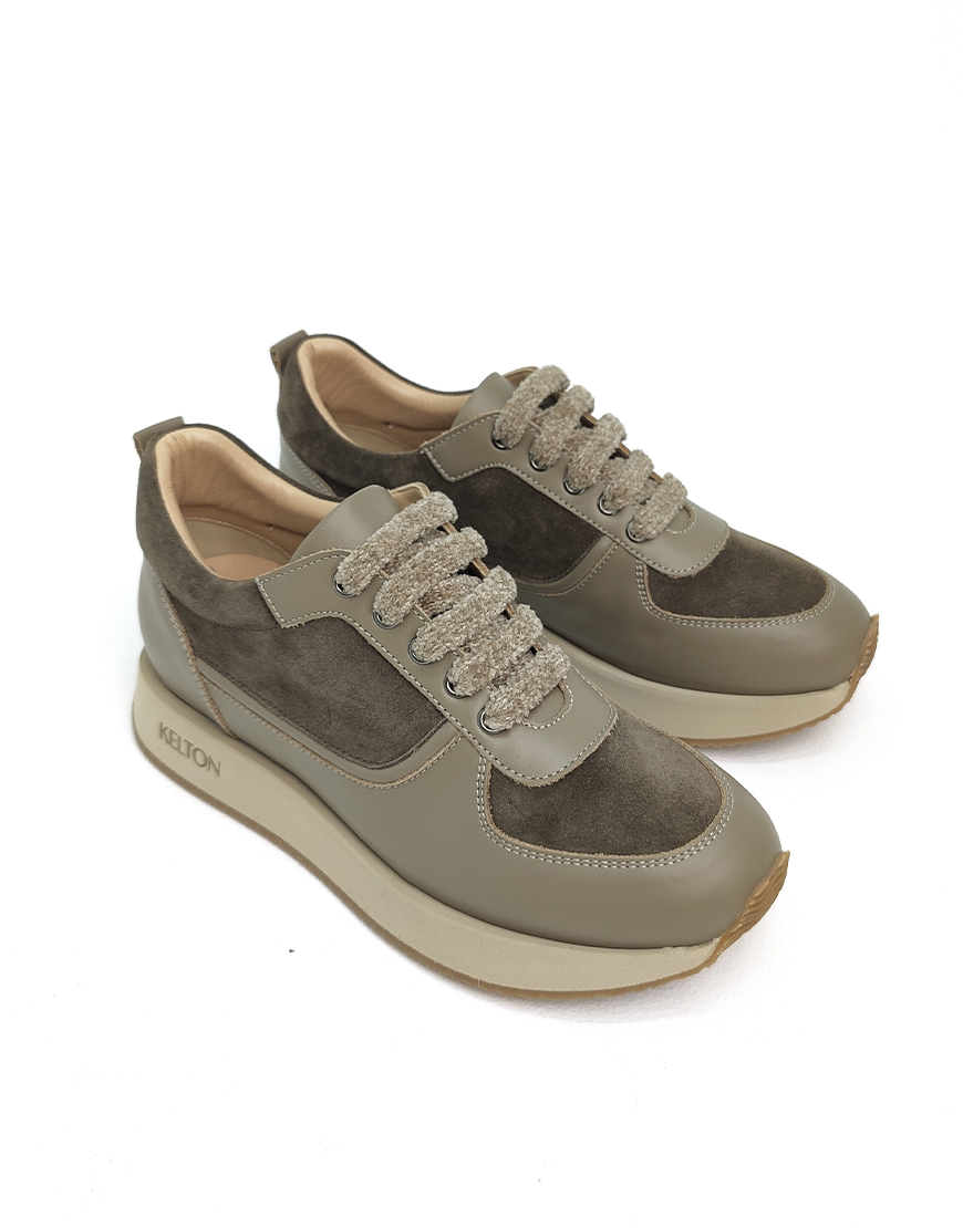 Kelton кроссовки в бежевой коже с замшей.