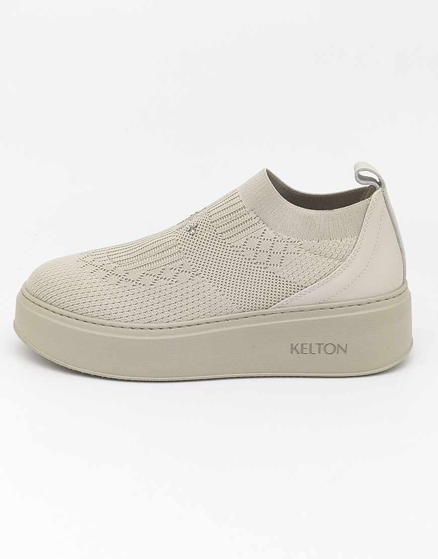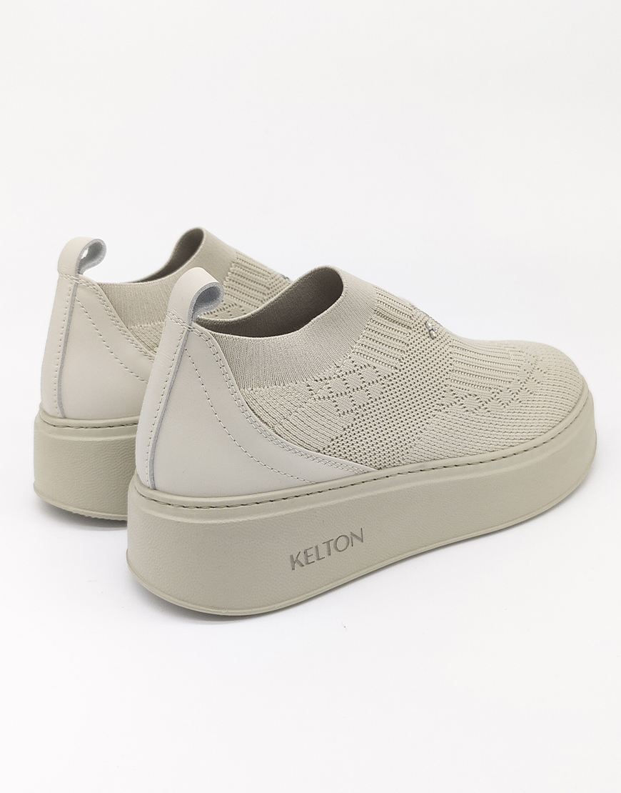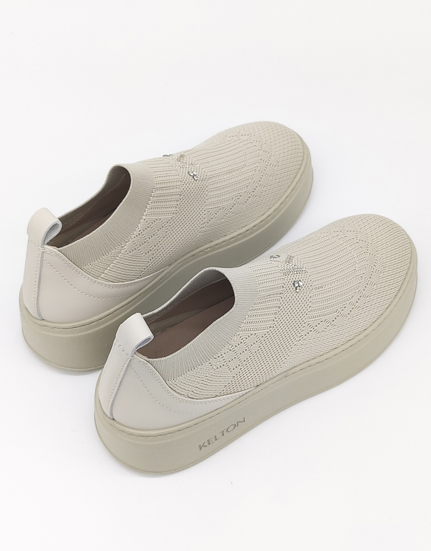 Kelton слипоны в бежевой коже, комбинированные со стрейчем.