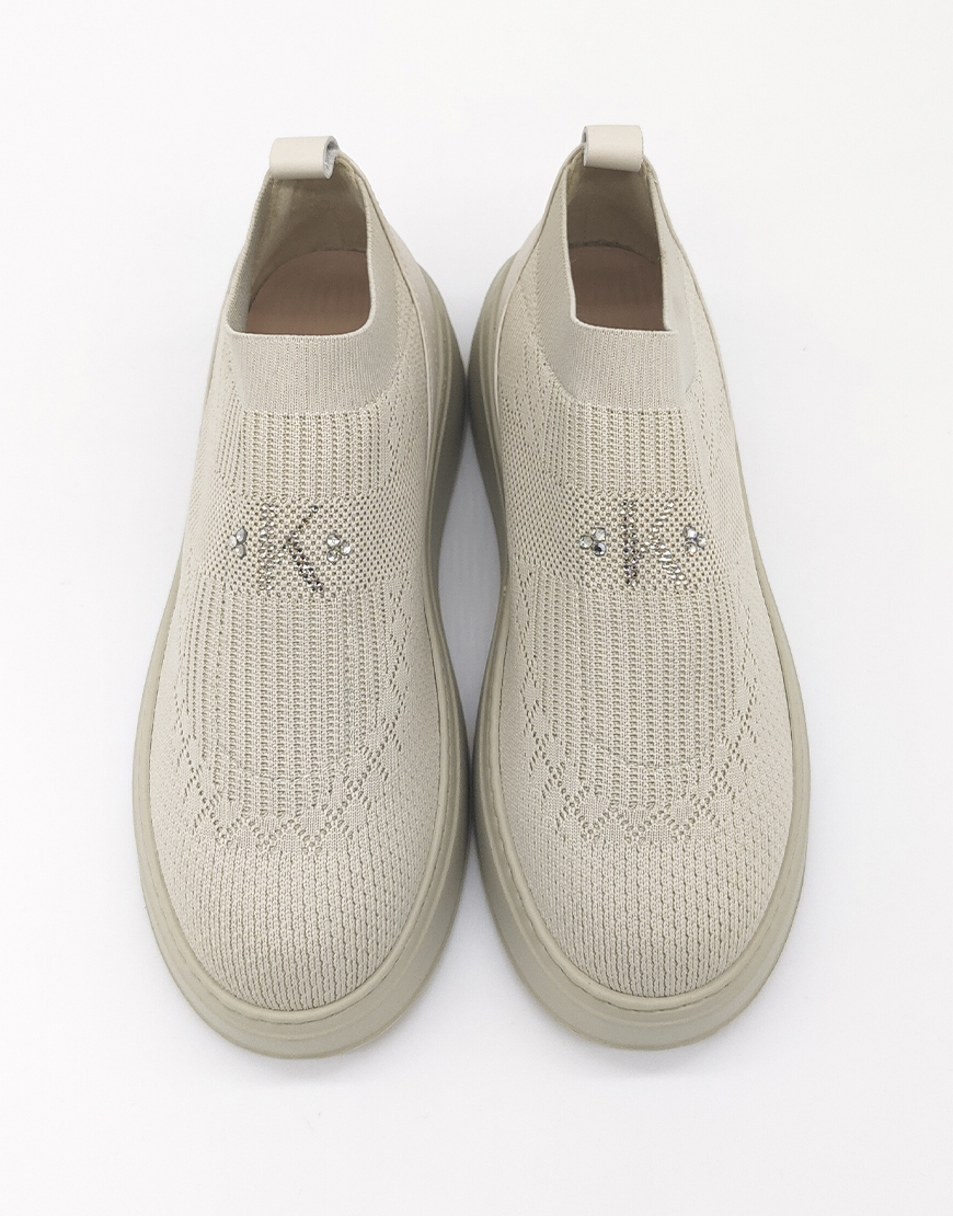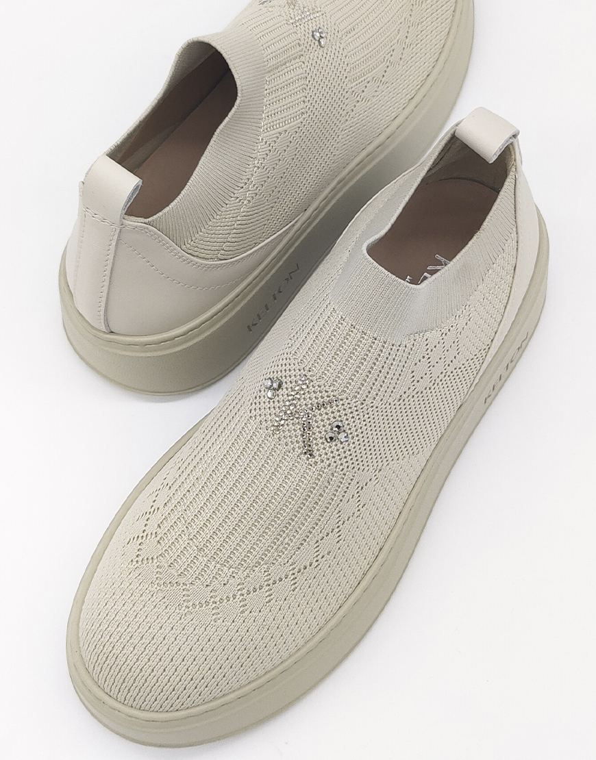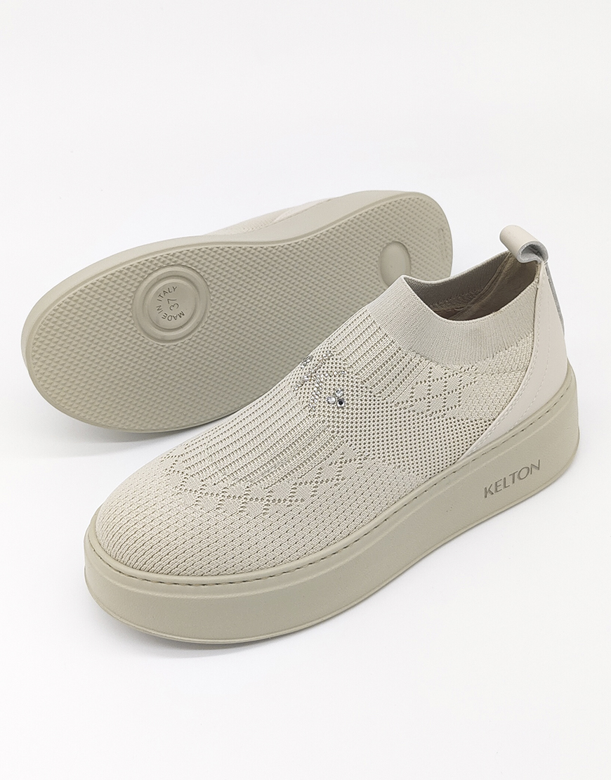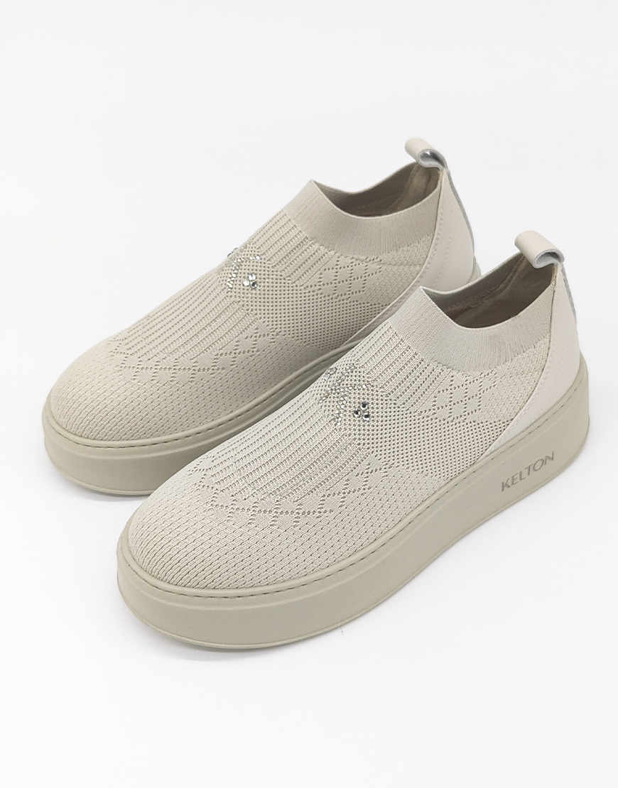 Kelton слипоны в бежевой коже, комбинированные со стрейчем.
