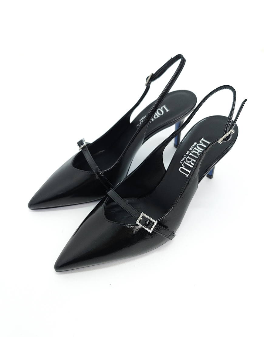 Loriblu слингбэки в чёрном лаке, с ремешком.